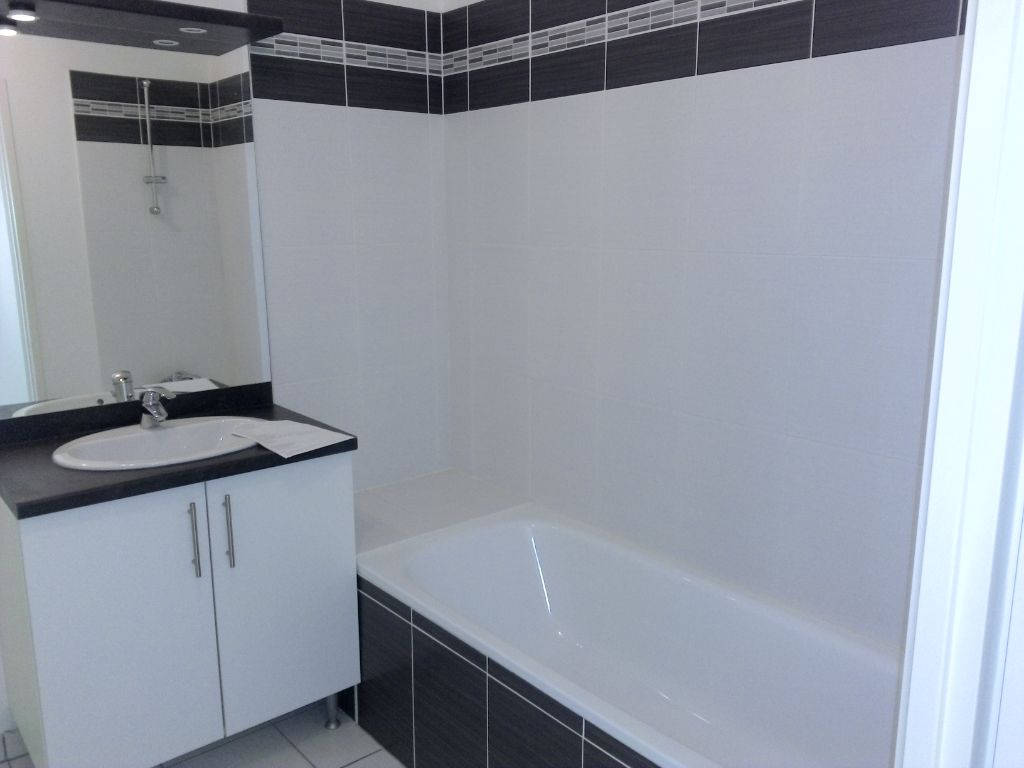 Eco quartier GINKO, appartement type 3 comprenant entrée, un séjour avec coin cuisine équipé (placards, plaque et hotte), 2 chambres, salle de bains, wc, 2 balcons et ...
