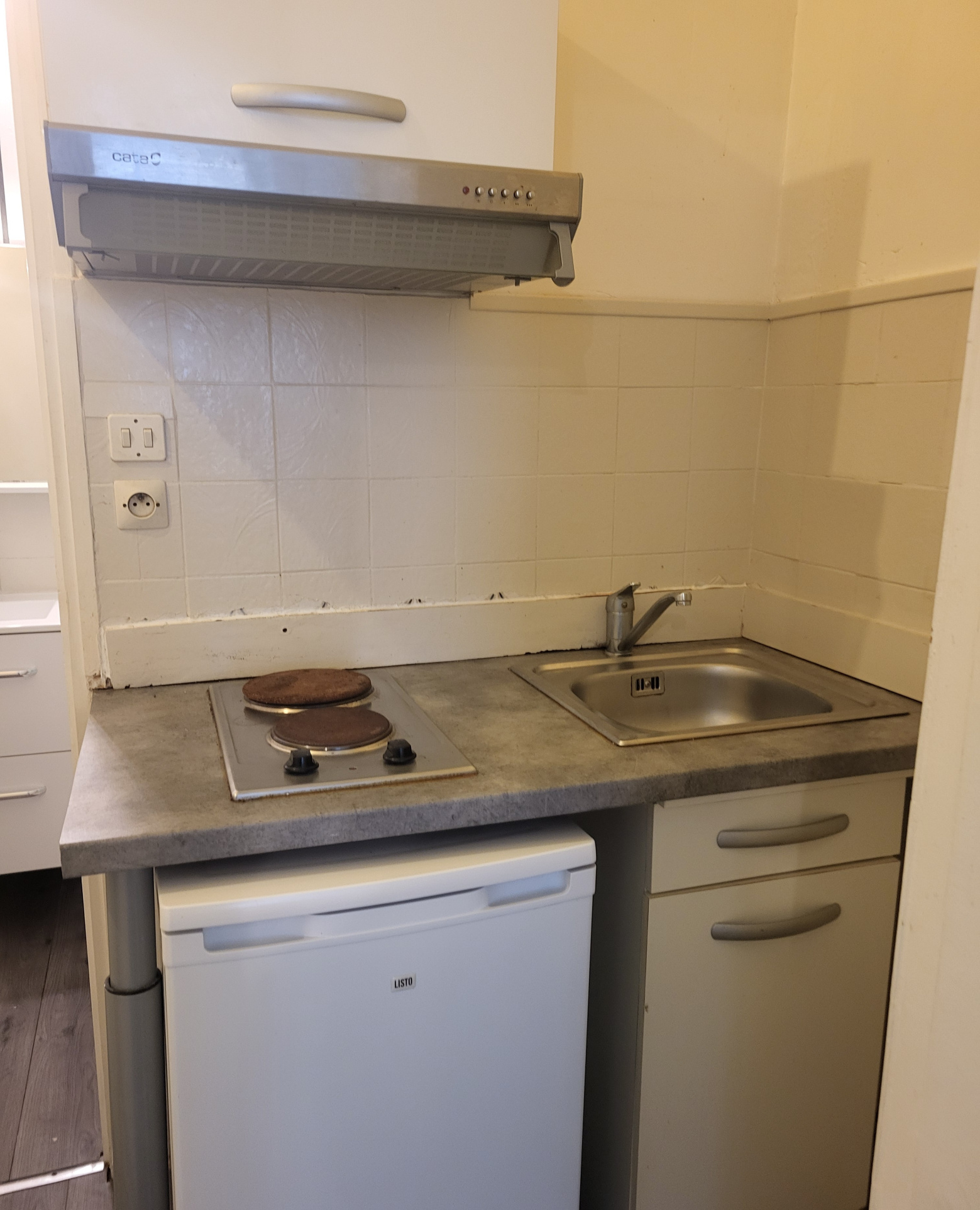 Appartement donnant sur cour composé d'un séjour avec coin kitchenette équipée (plaques, frig...