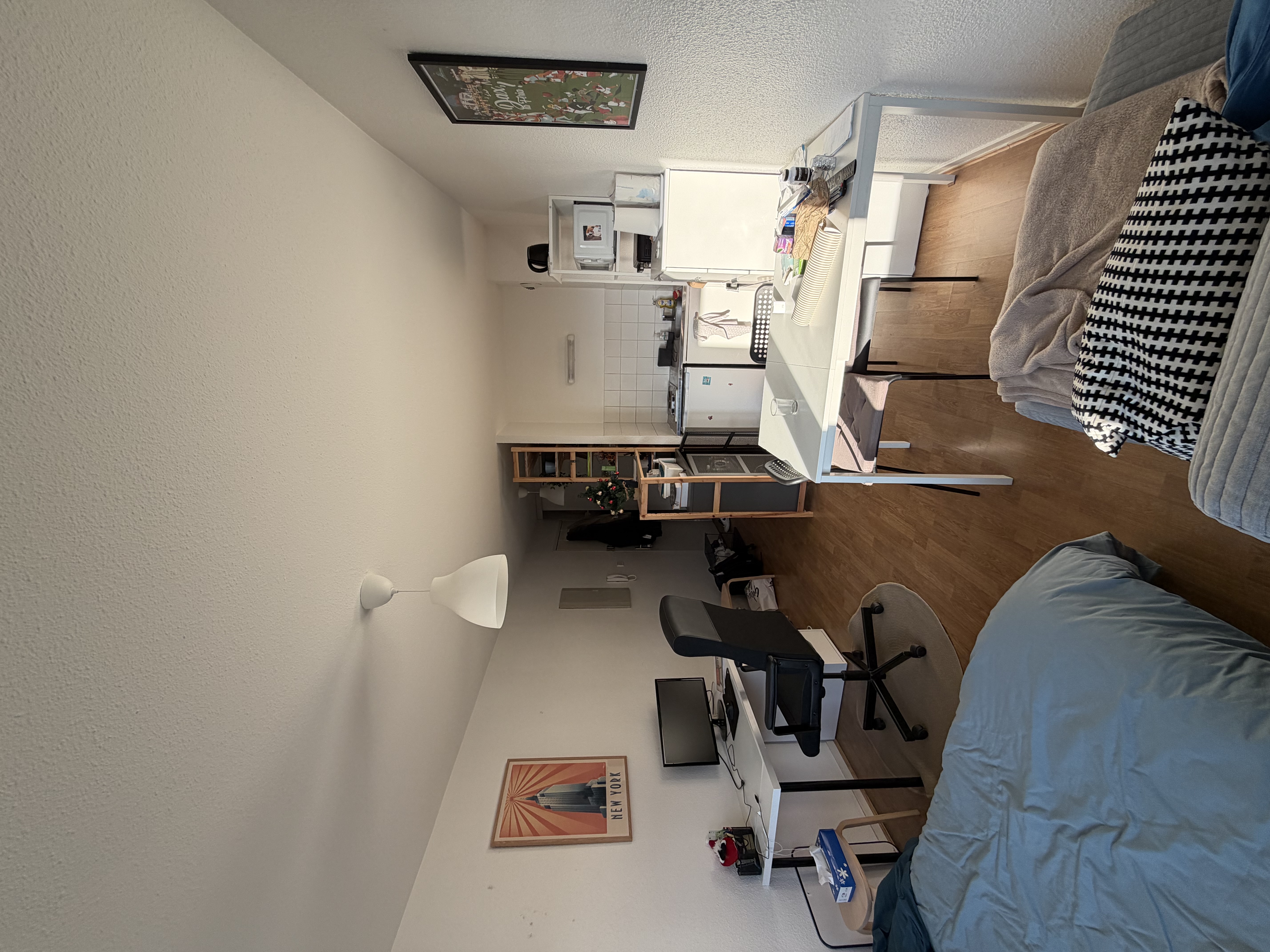 Dans un immeuble, studio meublé en bon état comprenant entrée, séjour, cuisine ouverte équipée, salle d'eau avec wc.