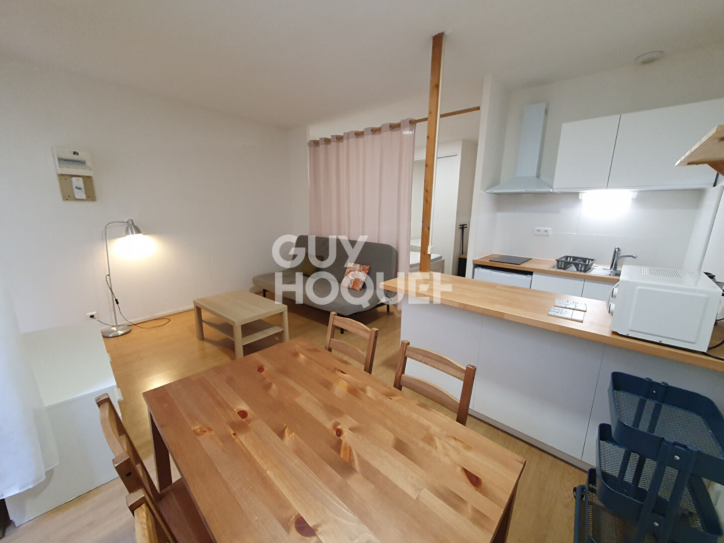 Studio meublé 24 m2 Rue De Lurbe meublé et équipé situé au 1er étage à l'arrière au calme dans un immeuble pierre.Un séjour de 13 m2,un coin nuit, une cuisine séparée avec plaques de cuisson électrique, four, hotte aspirante, micro ondes, une salle d'...