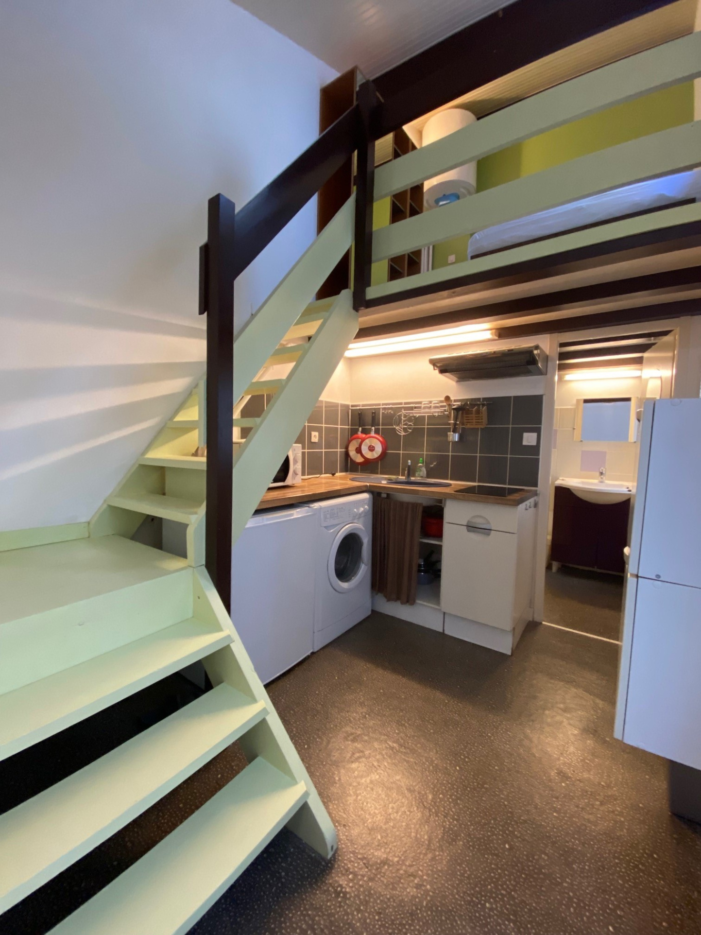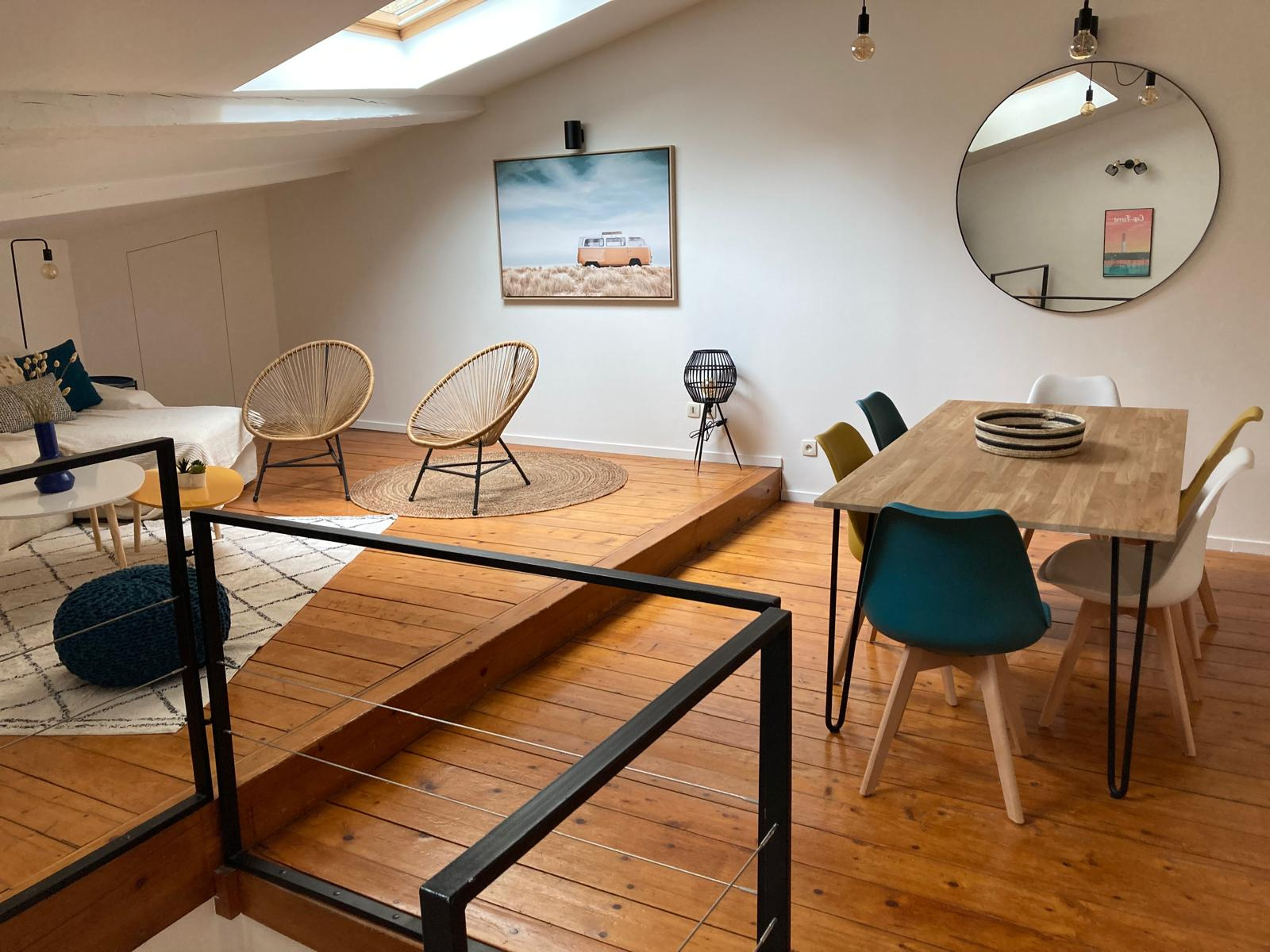 Ce logement se compose d'un séjour agréable, d'une cuisine aménagée et entièrement équipée, ainsi que d'une coin nuit en mezzanine. Une sa...