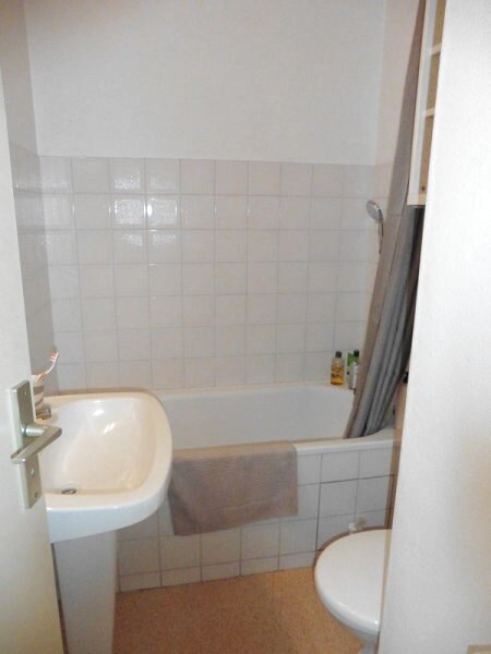 À louer, appartement T1 bis situé en rez-de-chaussée comprenant une entrée de 2,2m² avec placard, une pièce principale de 8,9m² avec coin cuisine aménagée, 1 chambre de 8,65m² et une salle d'eau de 3.04m² avec wc.