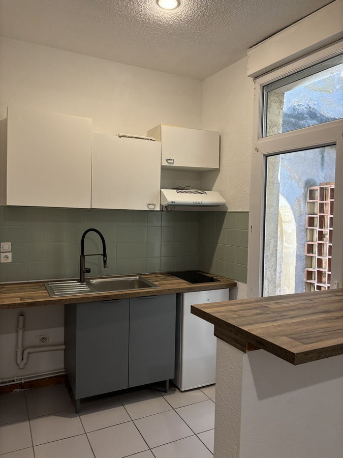 À louer, T1 vide de 36,76 m² situé en rez-de-chaussée d'un petit immeuble en pierre, avec entrée individuelle.
