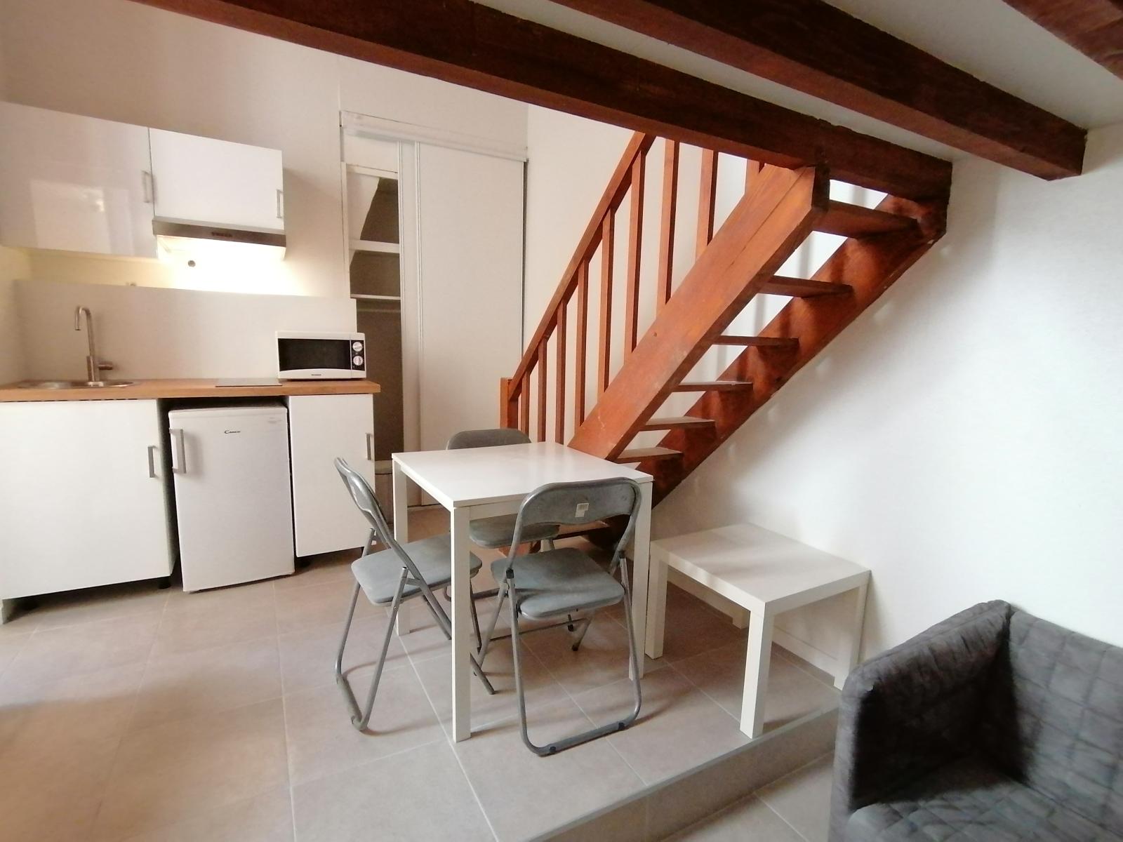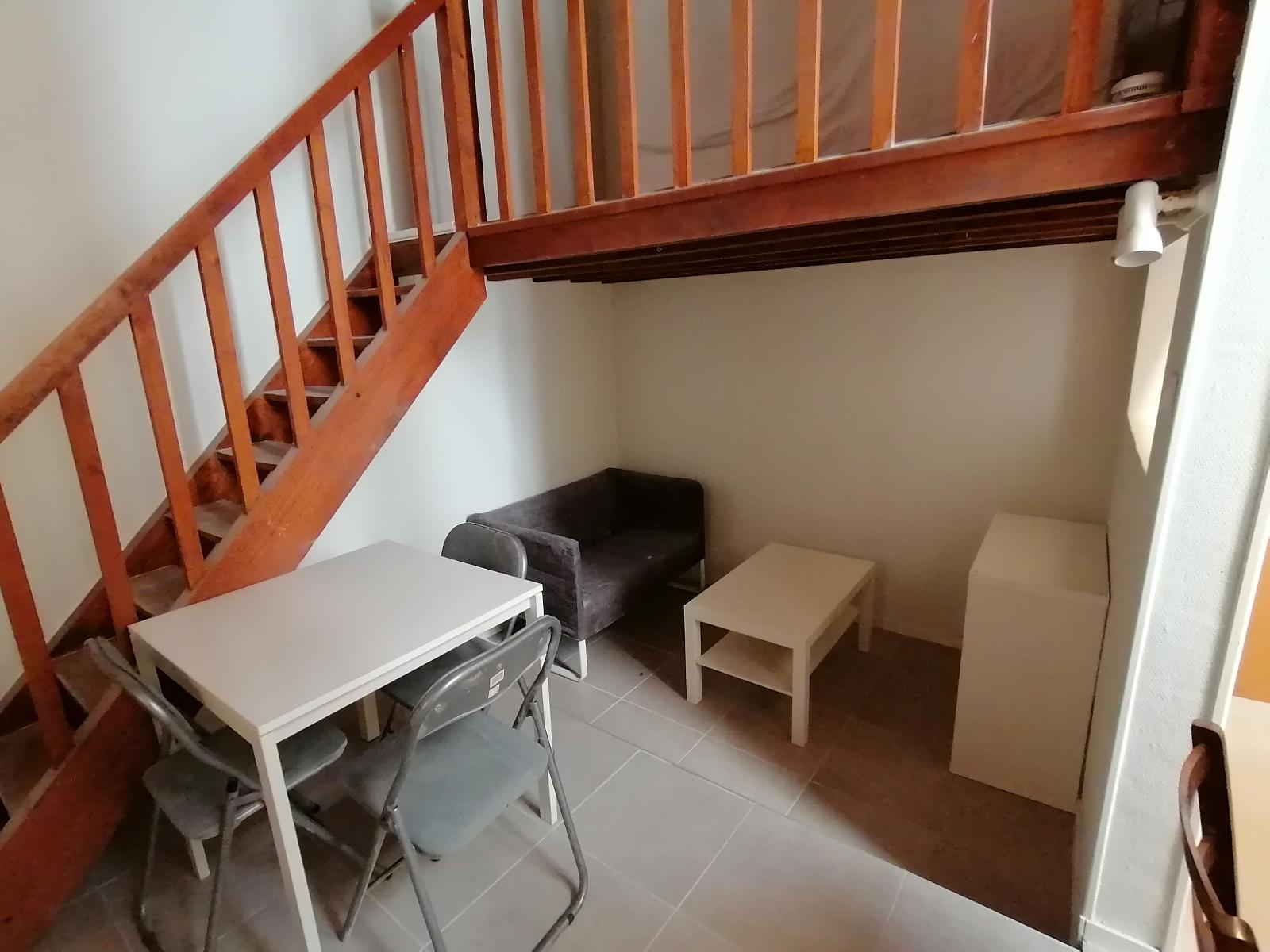 BX Victoire - A Bordeaux dans le quartier de la Place de la Victoire loue studio meublé de 17.50m² avec mezzanine (+8.5m² <1.80m) au 2e et dernier étage d'un petit immeuble pierre. Appartement clair donnant sur rue composé d'un séjour avec coin ki...