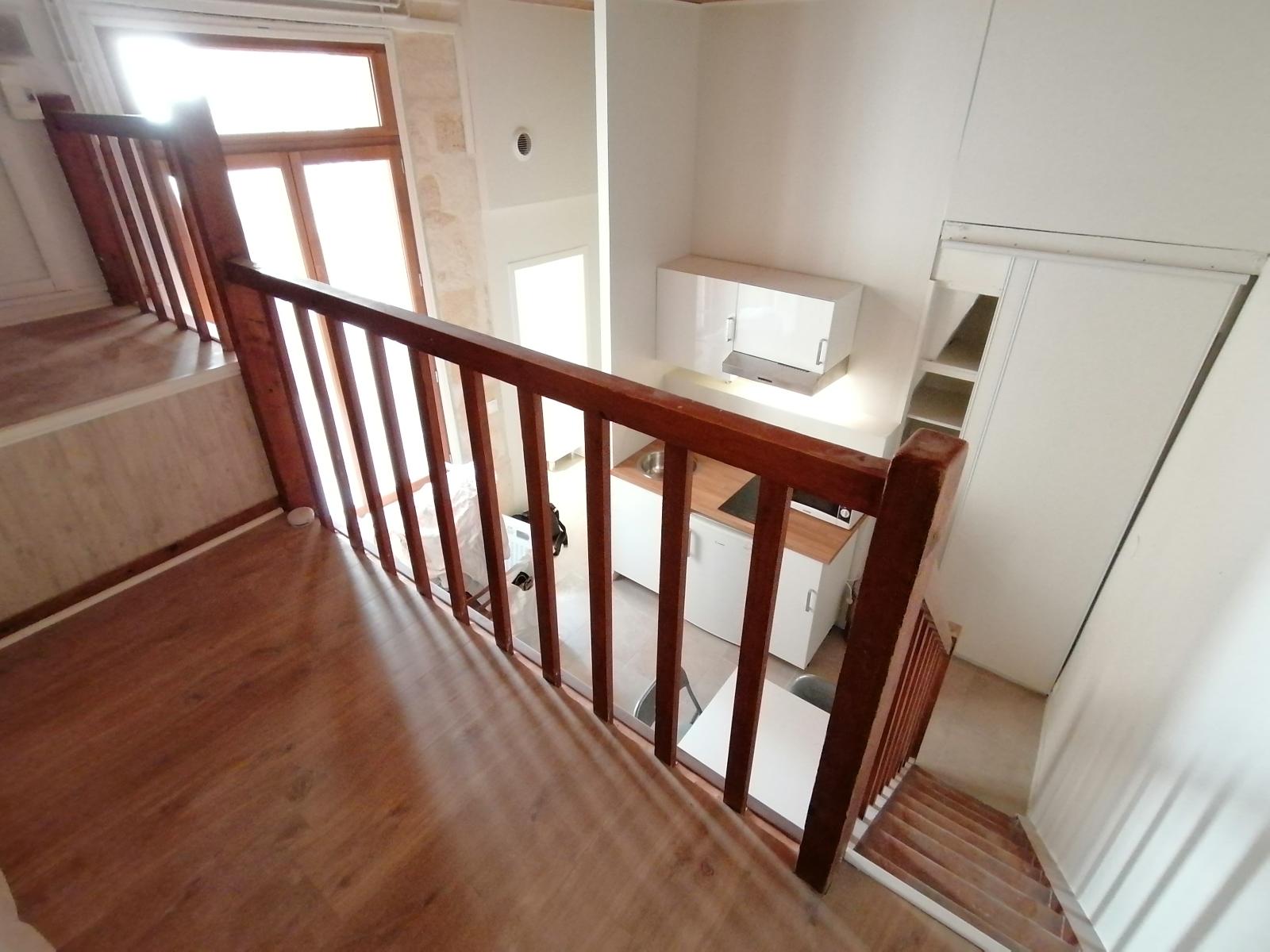 BX Pey Berland - A deux pas de la Mairie de Bordeaux, loue studio meublé de 19.34m² + 6.33m² <1.80m de mezzanine au RDC d'un joli immeuble en pierre. Appartement donnant côté cour composé d'un séjour avec coin kitchenette équipée (plaques, frigo t...