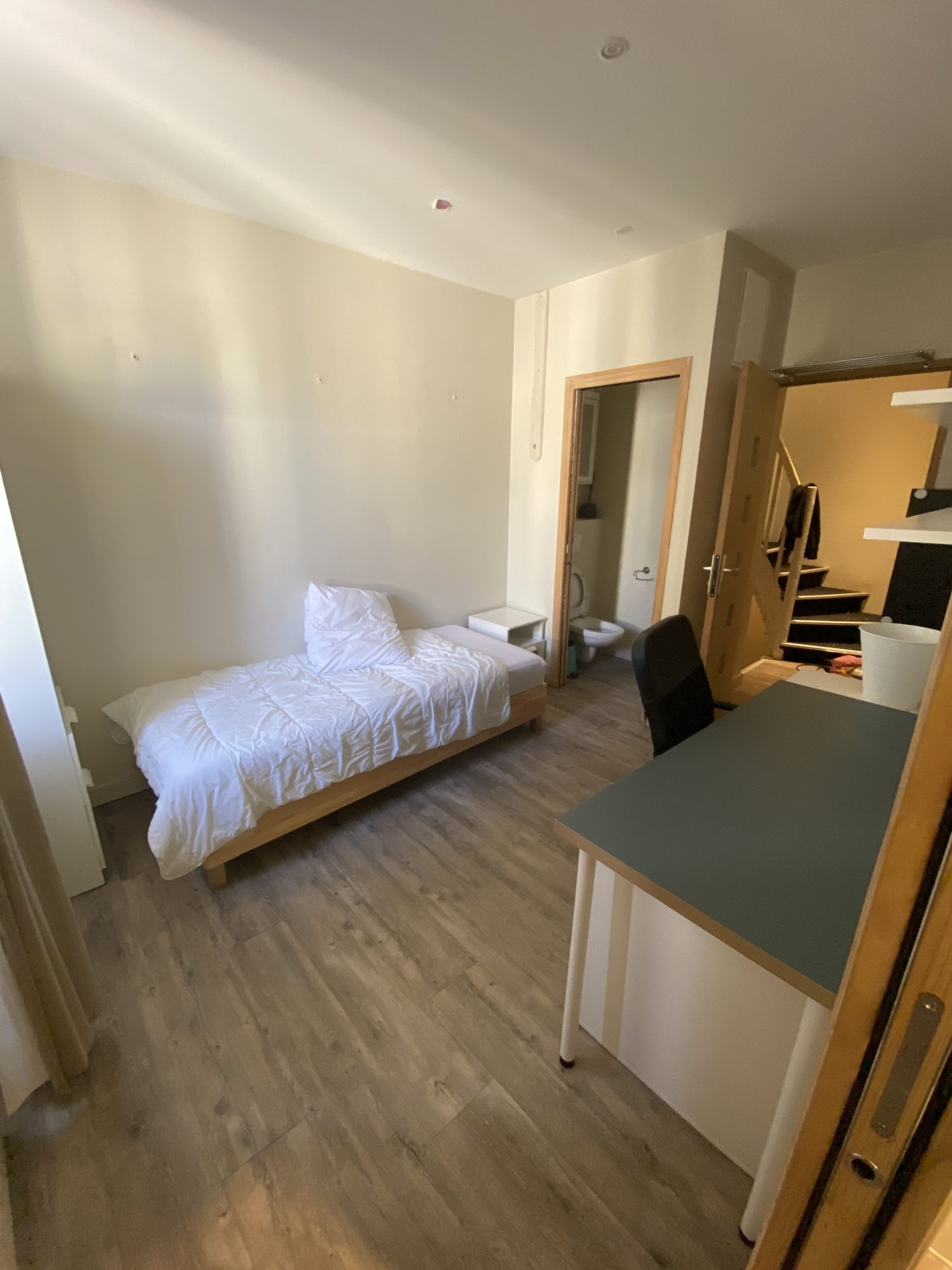 Située Rue Saint Nicolas, cette chambre meublée disponible à la location offre un cadre de vie confortable et pratique, idéal pour une personne seule.