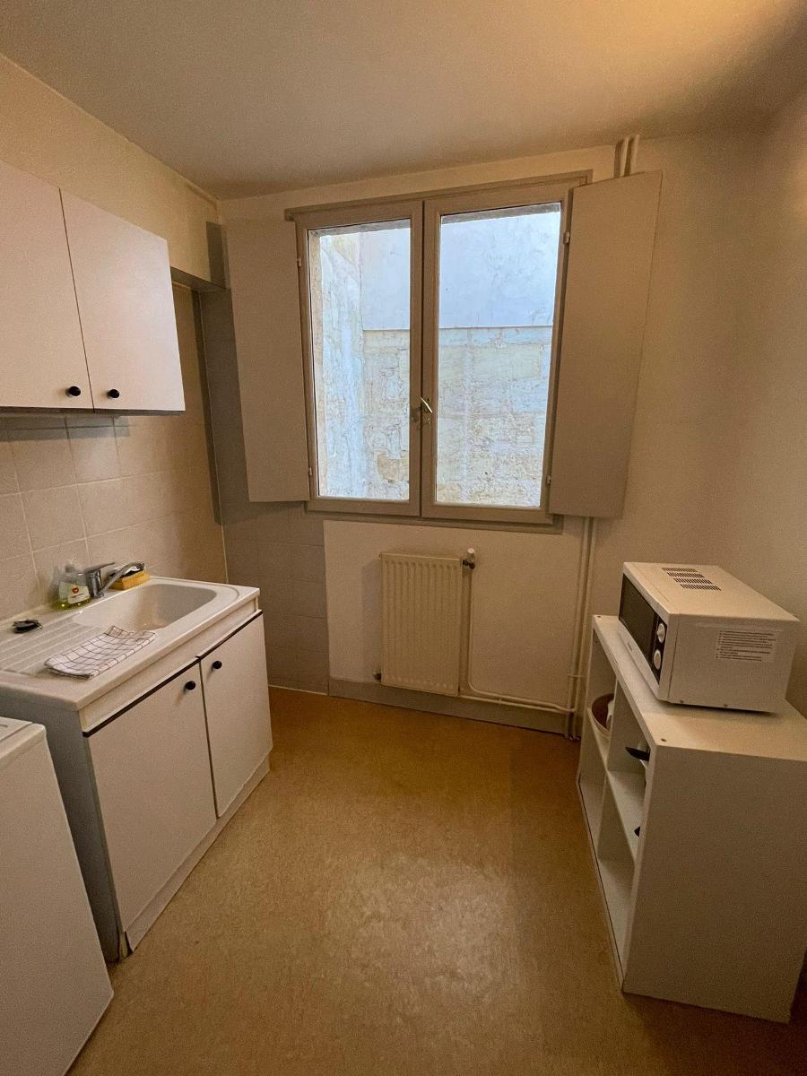 BX Yser-Capucins - Bordeaux, cours de l'Yser, loue studio meublé de 22.16m² au 1er étage d'un petit immeuble en pierre. Appartement en bon état donnant sur cour composé d'un séjour avec coin cuisine équipée (plaques, frigo top, micro-ondes, hott...
