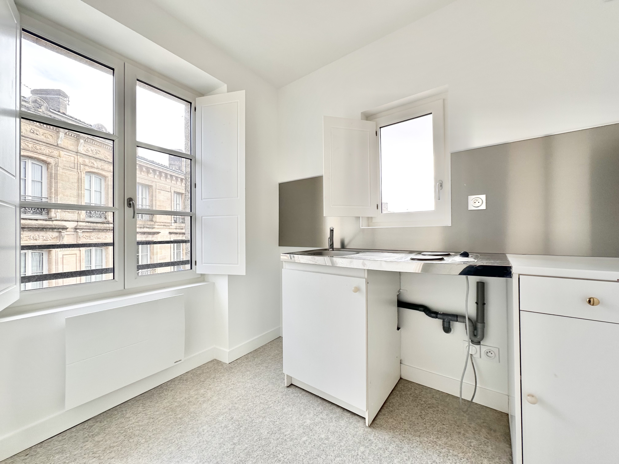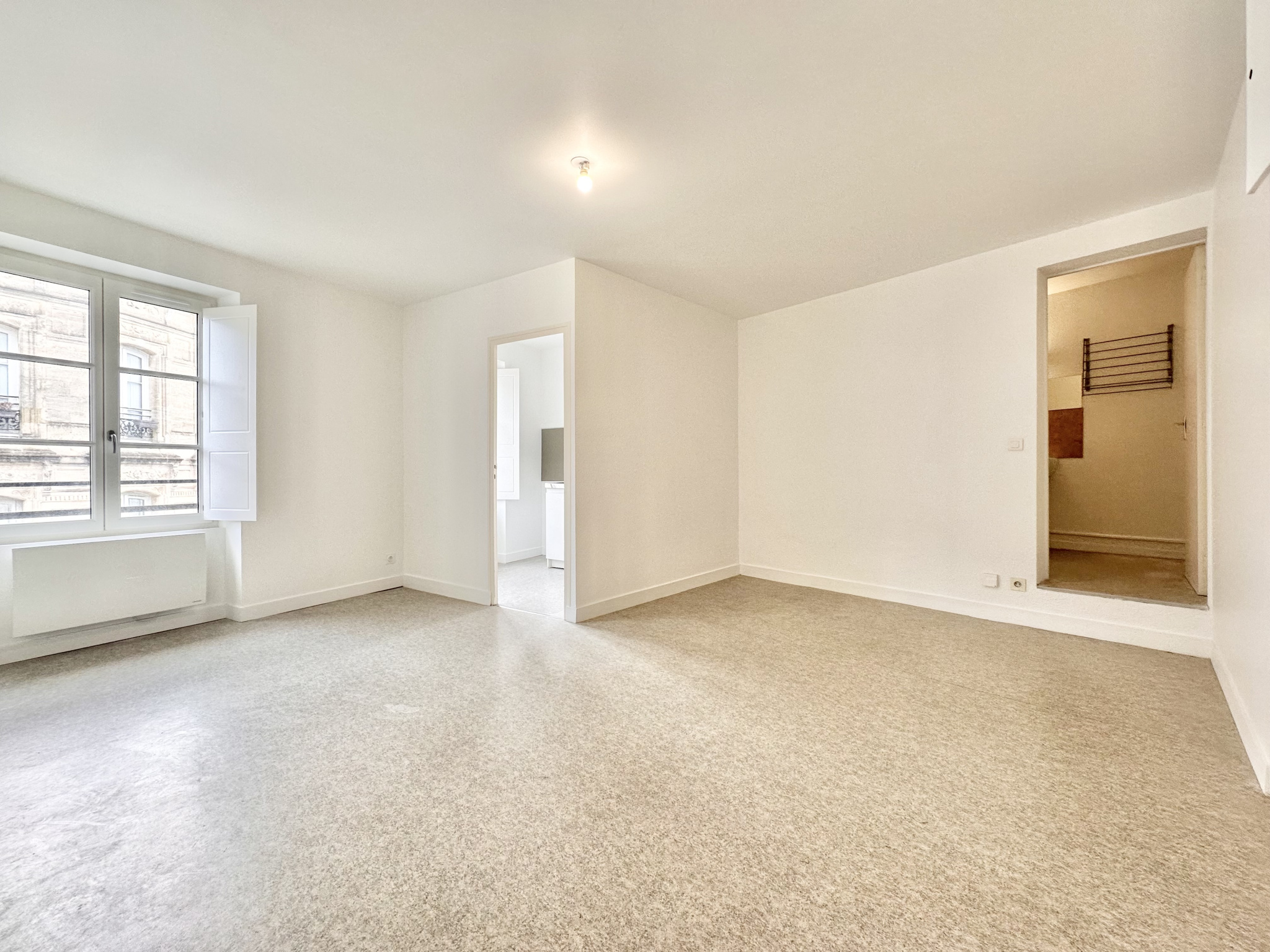 Bordeaux Chartrons, appartement T1 bis comprenant séjour avec cuisine ouverte aménagée, salle d'eau avec wc et bureau, chauffage électrique, libre à partir du 20 octobre.