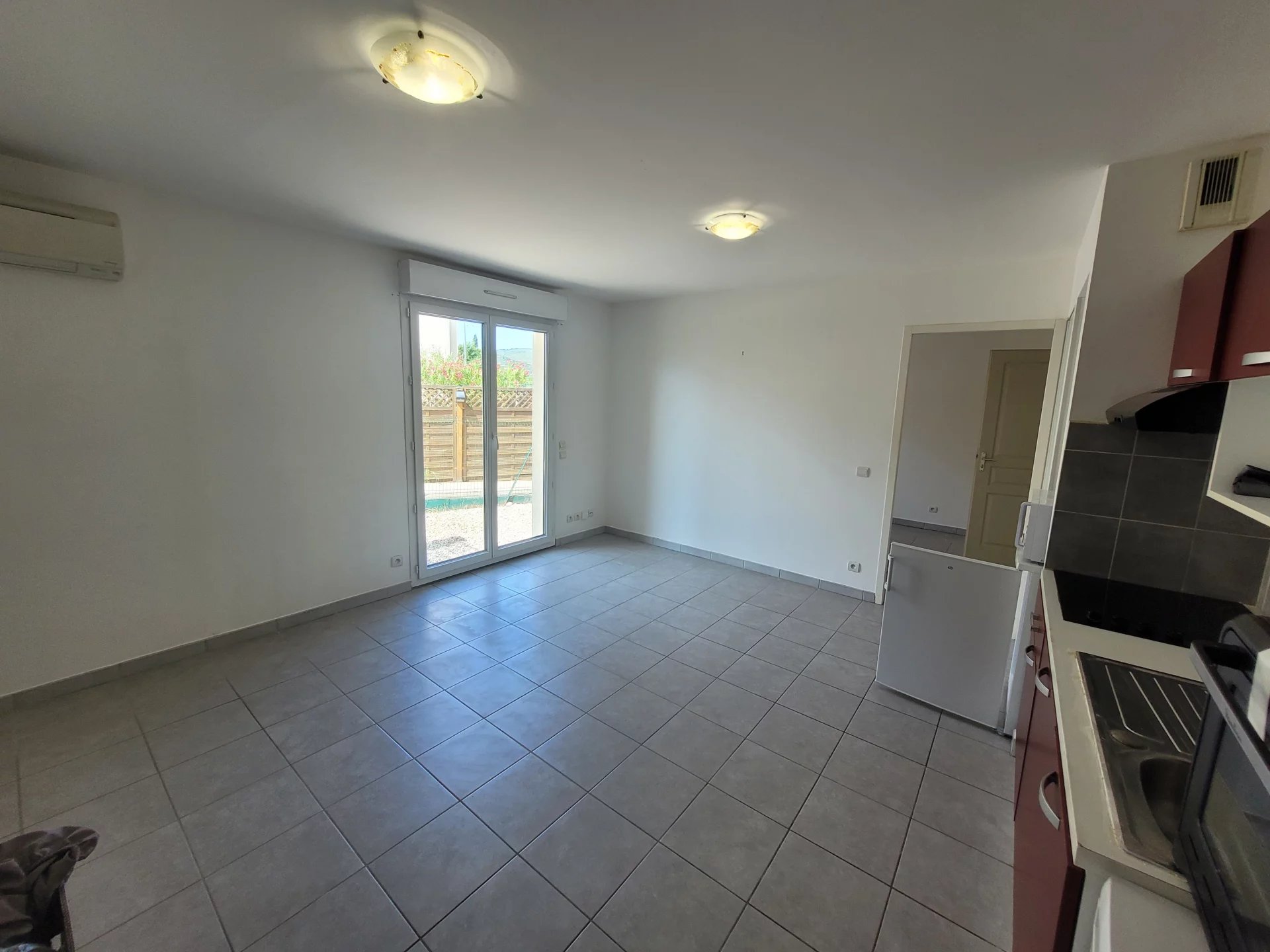 Une cuisine avec placards, un séjour climatisé avec placards de rangement, une chambre, un bureau , une salle d'eau, w.c et une jolie terrasse privative ! <...