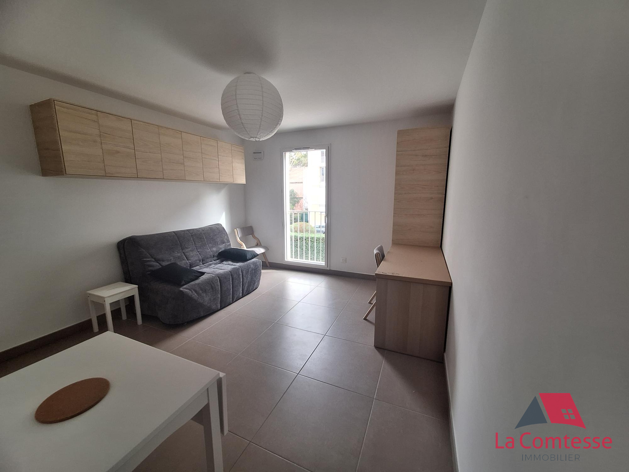 Nous vous proposons cet appartement T2 en location meublée longue durée libre. Il est composé d'un hall d'entrée avec placard de rangement, une chambre avec un lit en 140, une armoire de rangement, une salle de bains avec baignoire, lavabo, WC, un sé...
