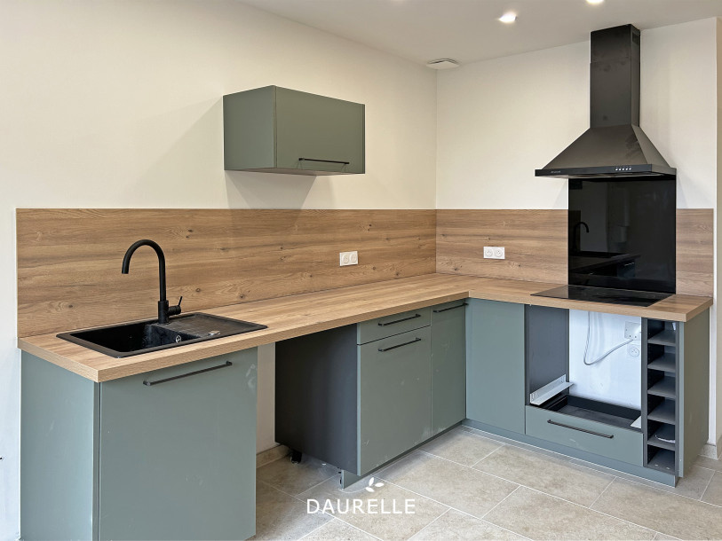 Il comprend un séjour lumineux avec une cuisine ouverte équipée et moderne, 2 chambres, une salle d'eau, un WC et une buanderie.