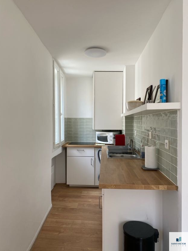 Studio meublé de 23 m² au 4ème étage ENTIERMENT RENOVE AVEC GOUT comprenant entrée, séjour/chambre avec cuisine équipée (plaques cuisson, hotte, réfrigérateur, lave-linge...).