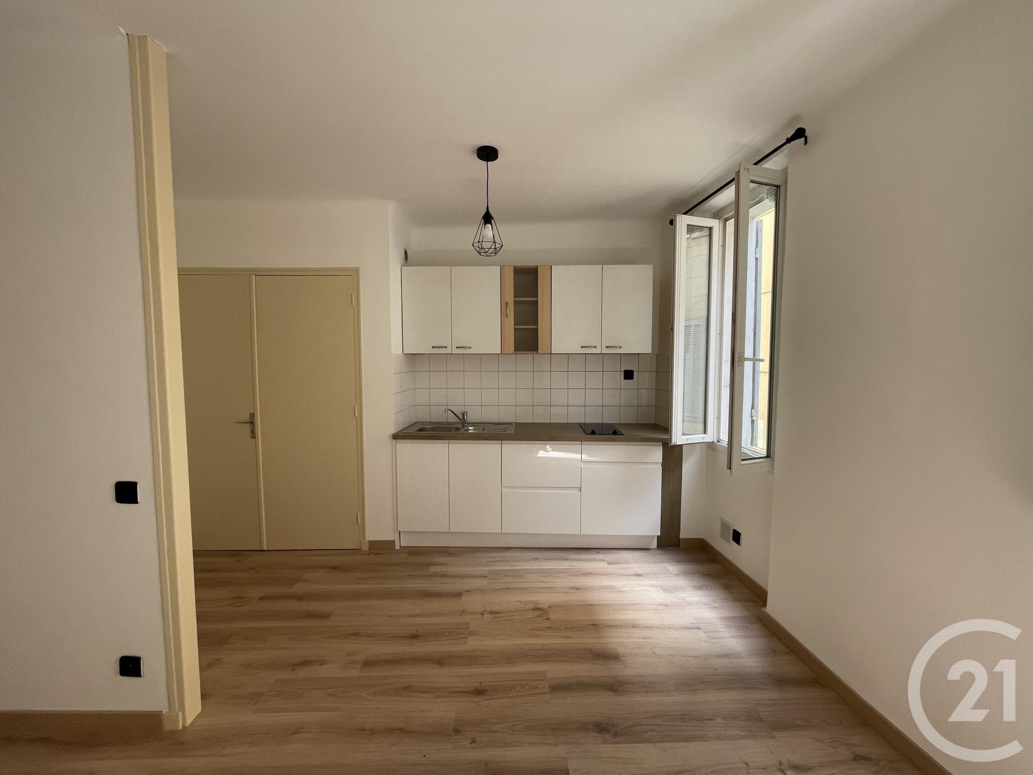 AUBAGNE en centre ville , Appartement de type T1 situé au 1er étage sans ascenseur d'un immeuble , composé d'une cuisine séparé de la pièce de nuit .