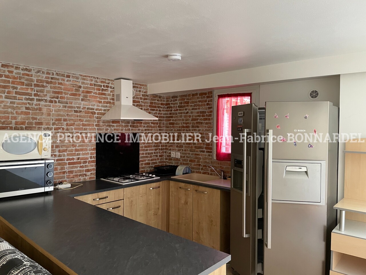 Au centre du village appartement T2 meublé, comprenant : une pièce de vie avec cheminée décorative, un coin cuisine, une grande chambre, salle de bains, wc et pièce annexe.