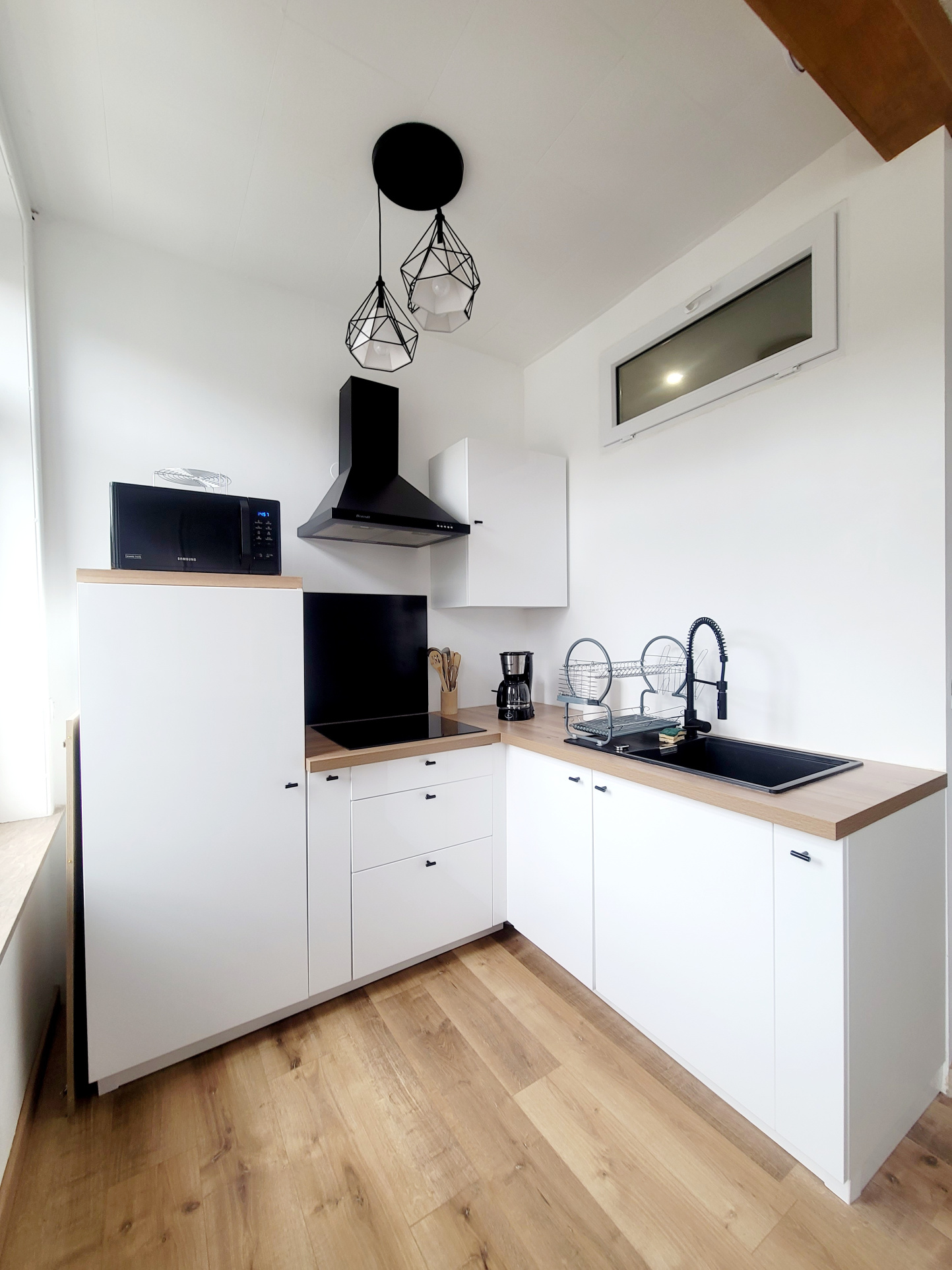 Cuisine ouverte moderne et conviviale.