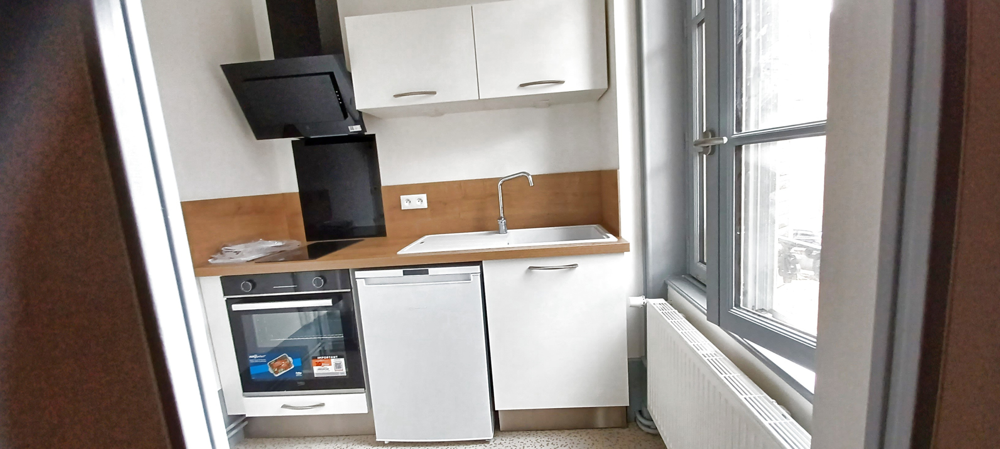 Appartement F1 au 1er étage d'un immeuble de caractère sécurisé (bureaux en rez de chaussée), plein coeur de Bourbon.