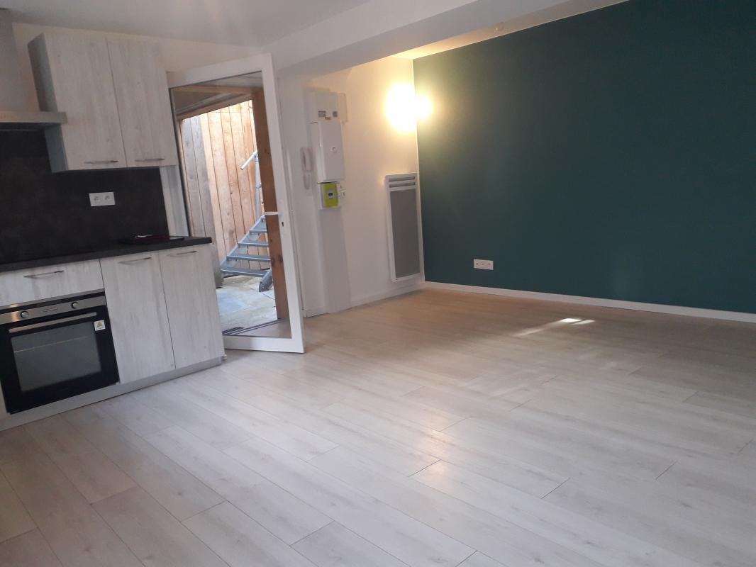 BOURCEFRANC LE CHAPUS - Centre ville - Appartement de plain-pied, rénové, offrant entrée sur pièce de vie / cuisine aménagée et équipée (hotte, plaque de cuisson et four), 2 chambres, salle d'eau, wc. Box ouvert dans une partie commune.