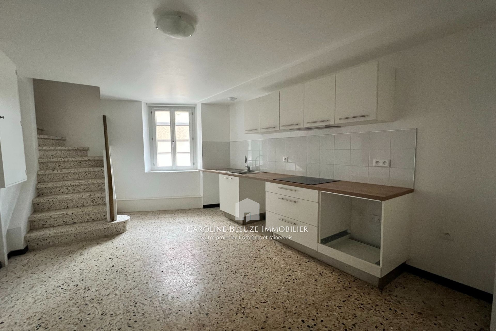 Sur la commune de BOUTENAC: appartement de type T4 composé d'une pièce à vivre avec cuisine aménagée et équipée d'une plaque de cuisson ainsi que d'une hotte aspirante, trois chambres avec placards, une salle d'eau et un WC séparé. L'a...