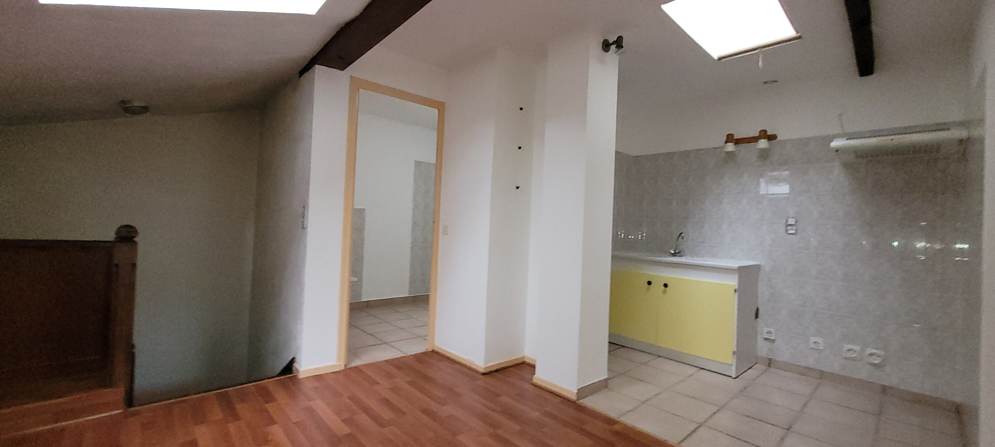 Appartement de 28.40m2 situé au 2ème étage sous les toits à Bretenoux (Lot), comprenant : Au 1er étage, porte d'entrée privative avec escalier desservant le logement au 2ème étage : Pièce de vie avec coin cuisine, Bureau, Chambre, Salle d'eau avec ca...