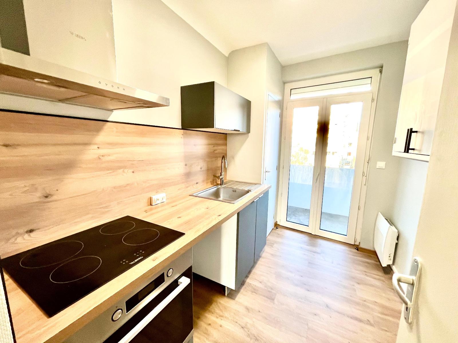 A LOUER / BRIVE Appartement rénové au 1er étage d'un immeuble composé : Entrée - Séjour avec balcon donnant sur une cuisine aménagée- une salle d'eau avec WC.