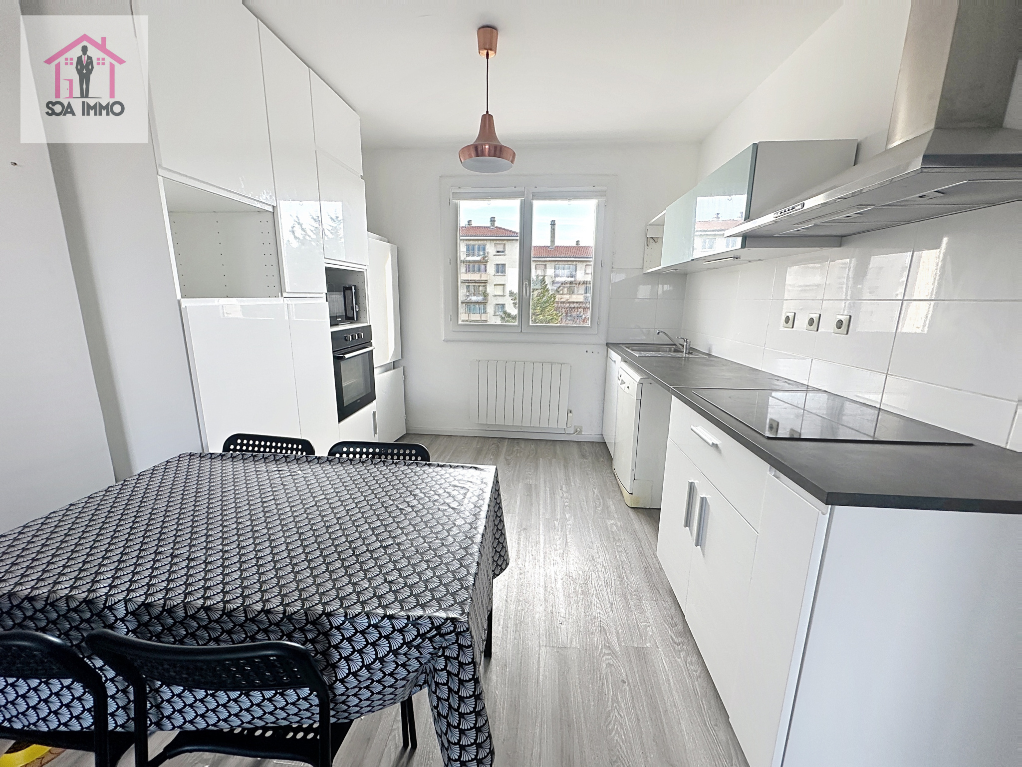 Le Cabinet Ginet à le plaisir de vous proposer à la location, ce charmant T5 situé au 3ème avec ascenseur est composé d'une entrée avec un placard aménagé. Un séjour double de 41.85 m² avec son balcon de 7.55 m² orienté au sud. Une cuisine aménagé de 9....