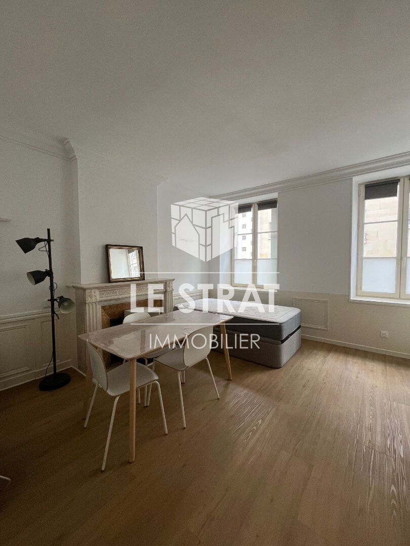 Caen , rue Basse , Studio meublé de 19.85 m² , comprenant une cuisine entièrement aménagée et équipée ouverte sur une pièce de vie , un coin mezzanine , d'une salle d'eau avec WC et de rangement . Libre