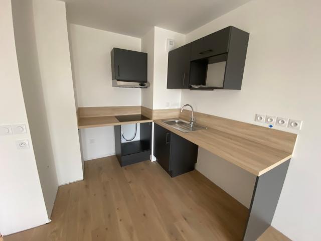 Dans résidence neuve avec ascenseur, bel appartement 2 pièces d'environ 46m² comprenant : entrée avec placard, séjour avec cuisine aménagée et équipée (plaque de cuisson et hotte) donnant sur balcon exposé plein SUD, chambre, salle d'eau avec wc.