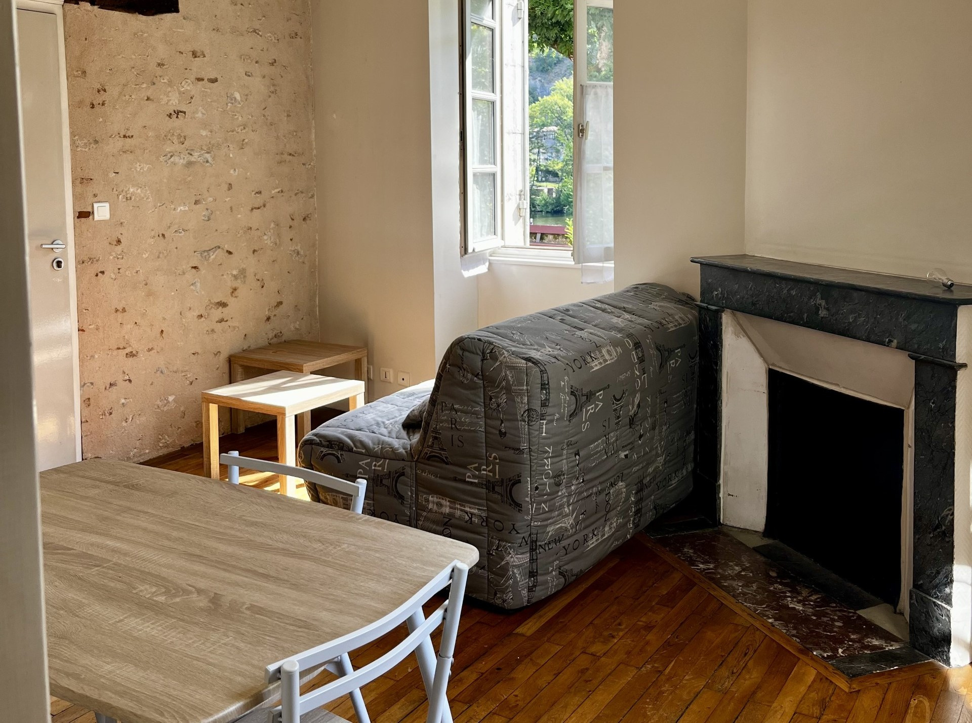 Appartement T1 bis meublé dans un immeuble ancien restauré avec goût avec vue sur le Lot.
