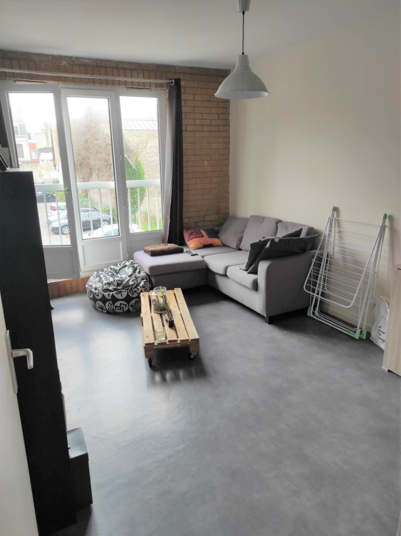 Appartement à louer sur Calais comprenant : une pièce de vie, une cuisine aménagée, un WC, une salle de bain et 2 chambres. - Les informations sur les risques auxquels ce bien est exposé sont disponibles sur le site Géorisques : www.georisques.gouv.fr