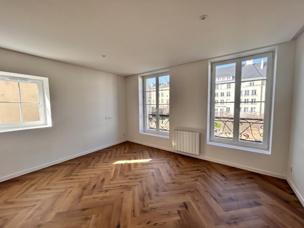 CAEN Hyper centre, 25 Rue Bellivet, F2 de 51,78m² au 3ème étage sans ascenseur, beaux volumes et très lumineux, offrant entrée, cuisine (plaque de cuisson vitro et hotte), arrière-cuisine, séjour avec balcon exposé sud ouest, une chambre, salle de douche. Chau...