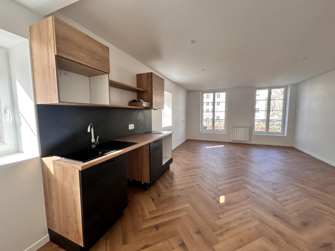 Nous vous proposons un F3 rénové de 62.21m² au 1er étage dans une petite résidence, le logement se compose d'une entrée avec placard, un grand séjour de 17,70m² avec une cuisine ouverte aménagée et équipée (plaque de cuiss...