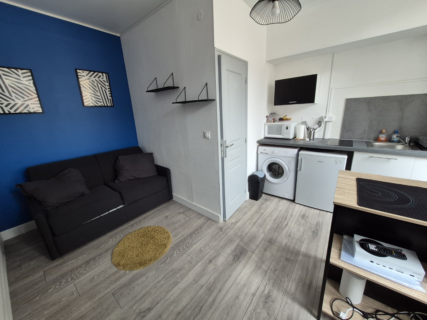 Cambrai, proche du centre ville et de la cathédrale, studio meublé comprenant une pièce de vie avec kitchenette, une salle de douche avec wc. - Les informations sur les risques auxquels ce bien est exposé sont disponibles sur le site Géorisques : www.georisque...