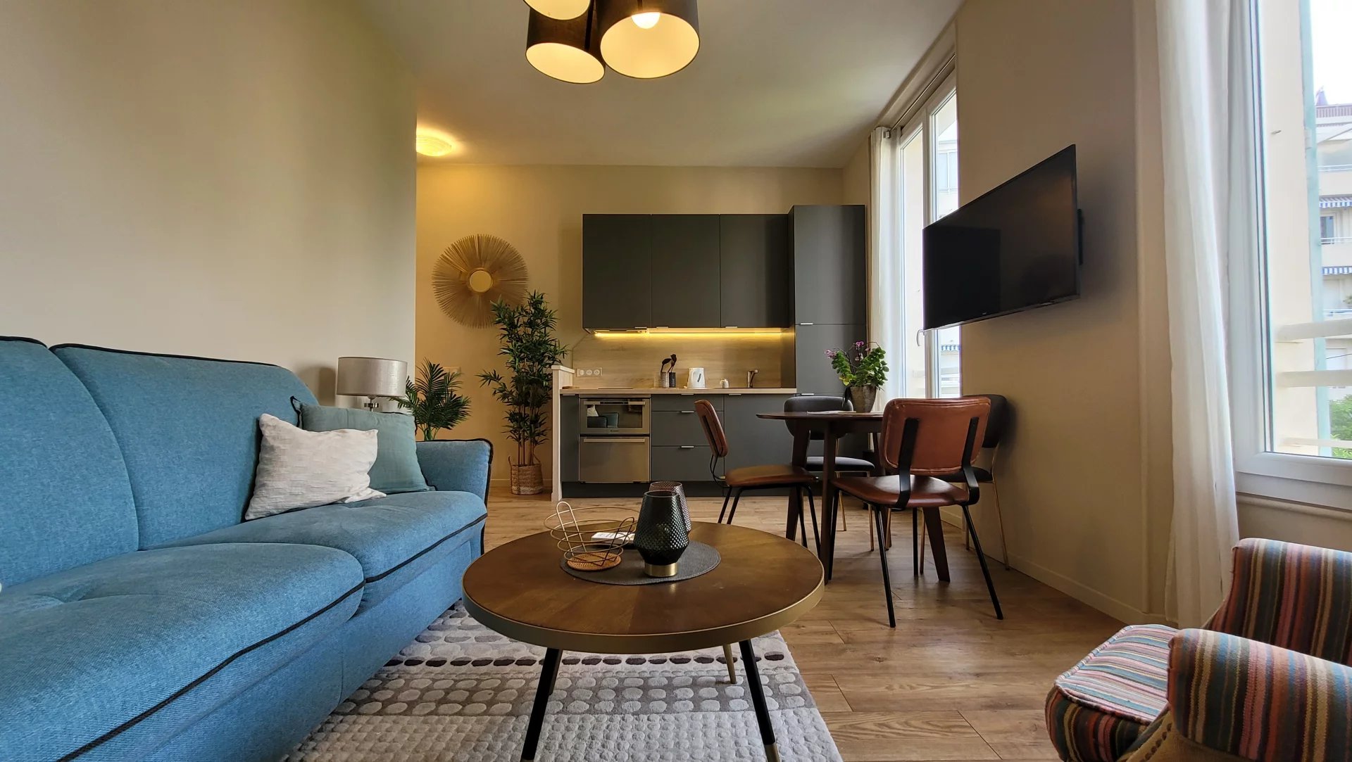 Idéalement situé en plein centre de Cannes, à proximité immédiate des commerces, transports et commodités, agréable appartement 3 pièces meublé offrant des prestations soignées.