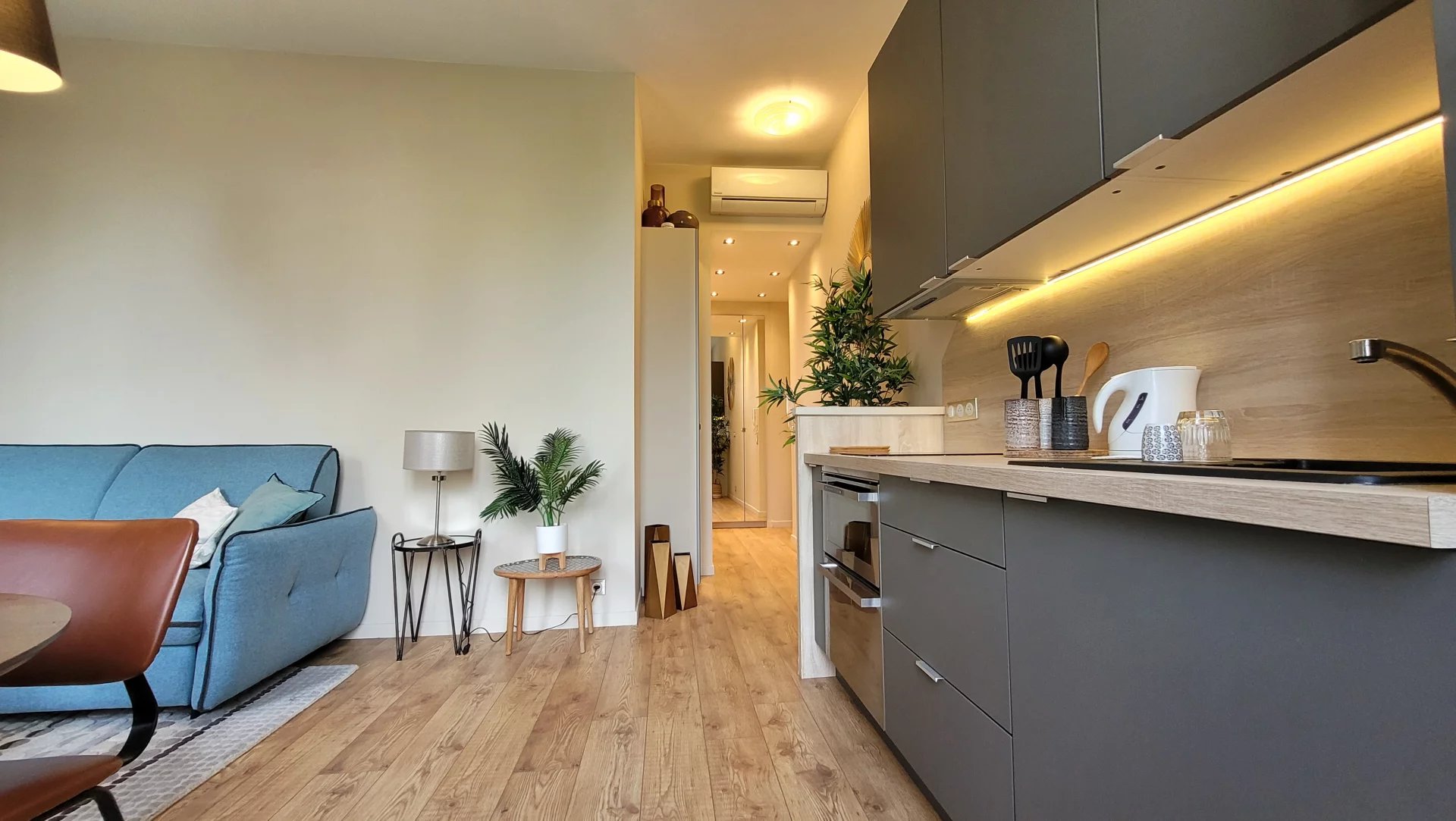 Au sein d'une résidence de 2014 au 3 ième étage plein sud splendide T2 meublé design de 42.34 m2, cuisine américaine toute équipée, chambre avec dressing salle d'eau attenante , wc indépendant,le top séjour et chambre donnant sur la belle terrasse de...