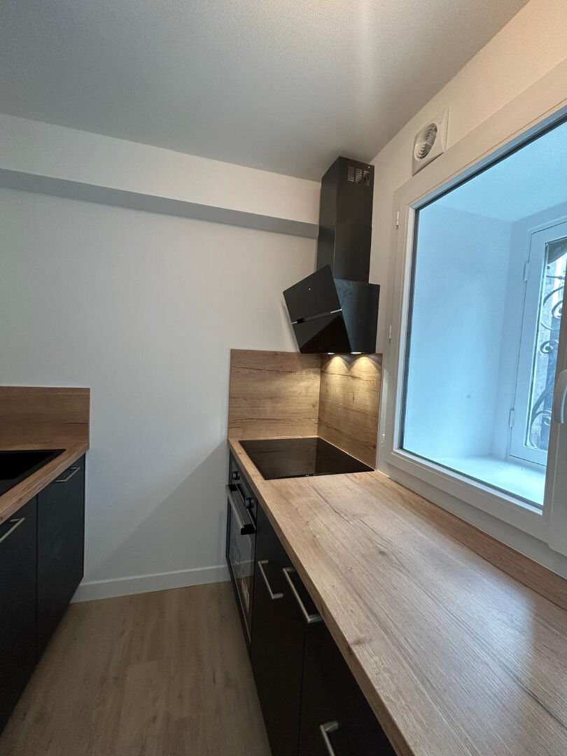 grand studio de 30 m2 entièrement rénové : cuisine aménagée neuve (évier, plaque induction, hotte, réfrigérateur, rangements) ouverte sur la pi...