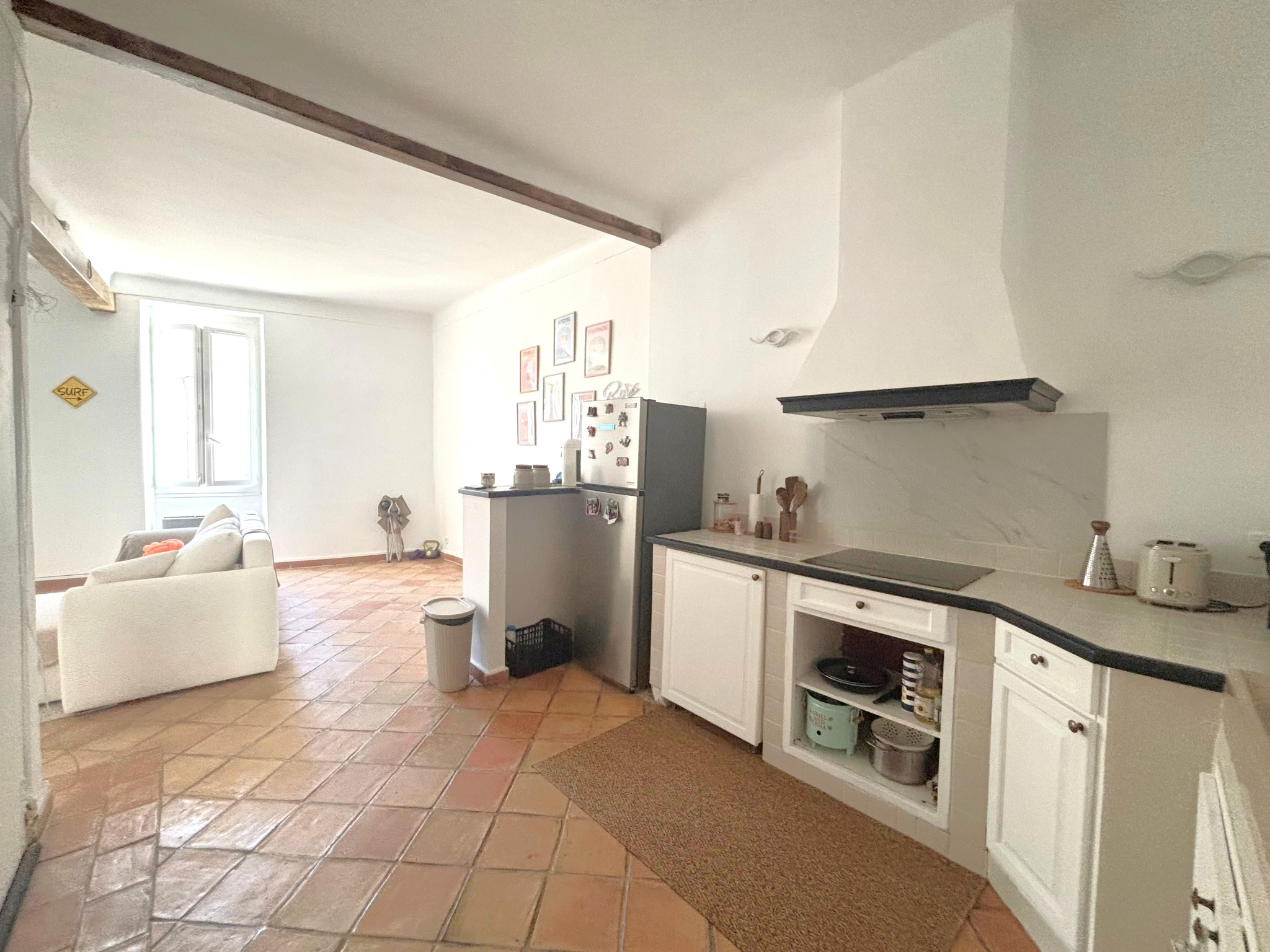Cassis - Location meublée - Au coeur du village, dans la rue principale, appartement de type 2/3 de 59 m2 situé au 1er étage d'un immeuble ancien. Ce logement traversant est composé d'une entrée, un séjour, une cuisine indépendante équipée, une chamb...