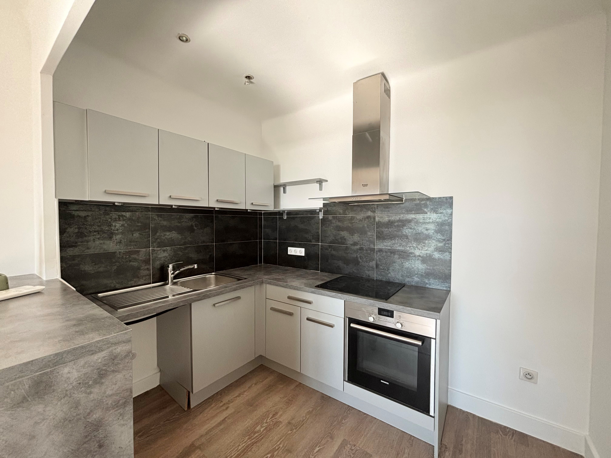 Cassis - Rue principale - Location appartement T2 de 49,06 m2 au 1er étage d'un petit immeuble. Il se compose d'un séjour avec cuisine ouverte, une chambre et une salle d'eau avec wc. Disponible immédiatement. Mdt 566.
