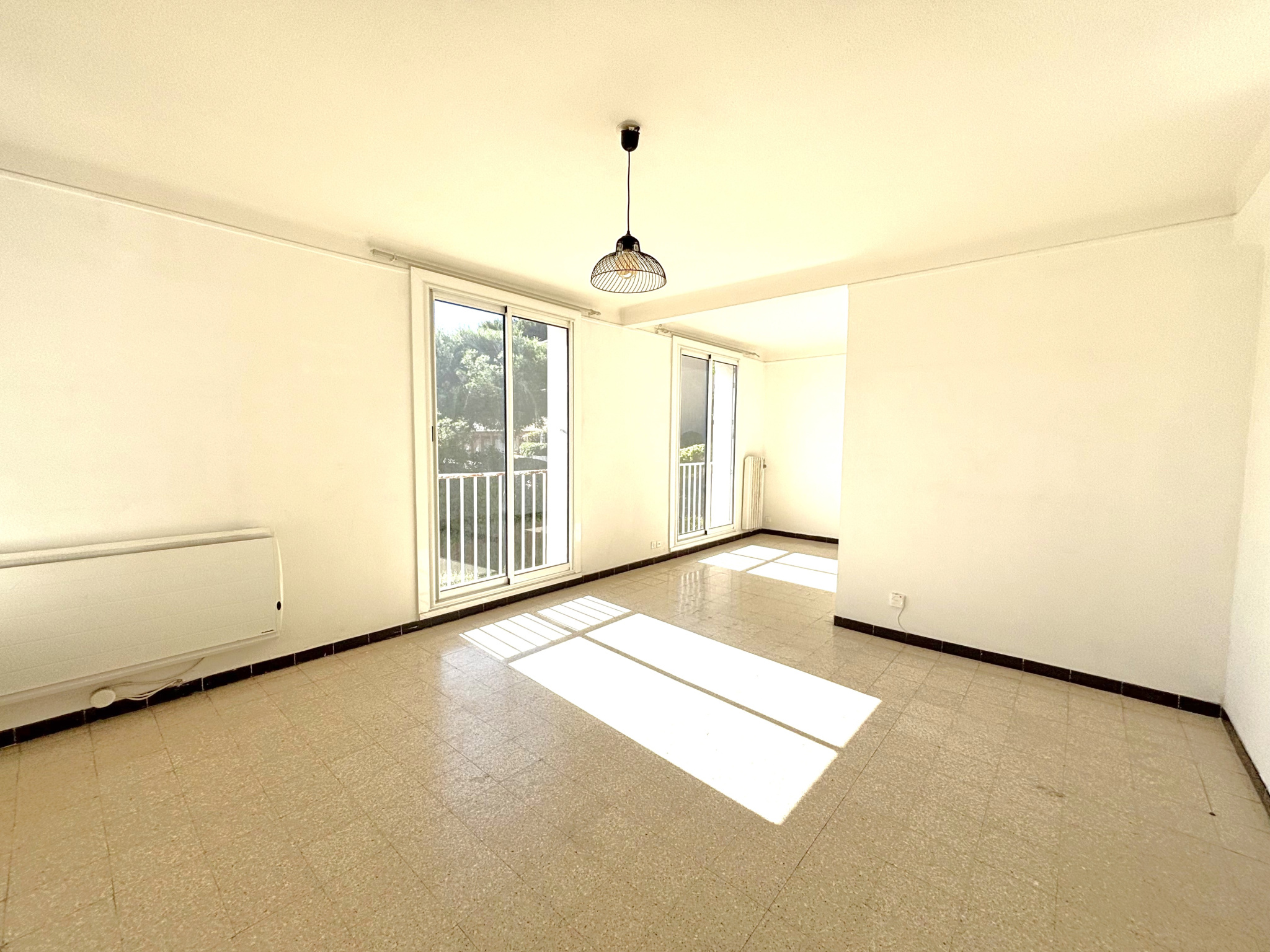 Cassis - Proximité port, location d'un appartement de type 3 de 58,19 m2 situé en rez-de-chaussée surélevé et composé d'un séjour avec cuisine ouverte équipée, deux chambres, une salle d'eau et un wc séparé. Loggia fermée et balcon. Parking faci...