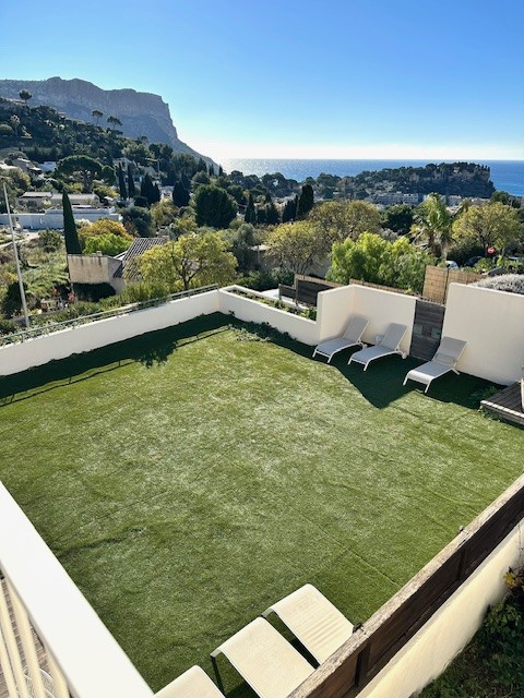 Cassis - Location meublée à l'année - A 5 minutes du port, dans petite résidence récente sécurisée, bel appartement de type 4 en duplex totalisant 112 m2 avec très belle vue sur la baie de Cassis.