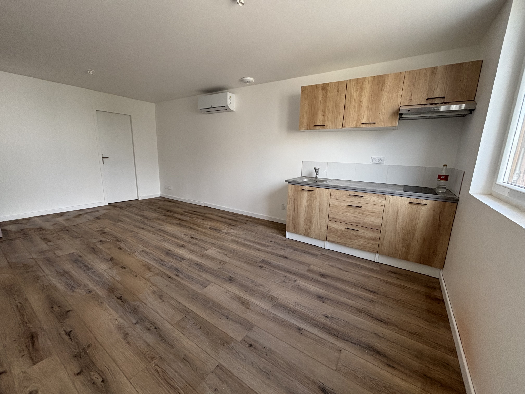 Situé au premier étage il se compose d'une entrée sur pièce de vie avec cuisine ouverte équipée (hotte et plaque) de 21,70m2, une chambre de 10m2, une salle d&...