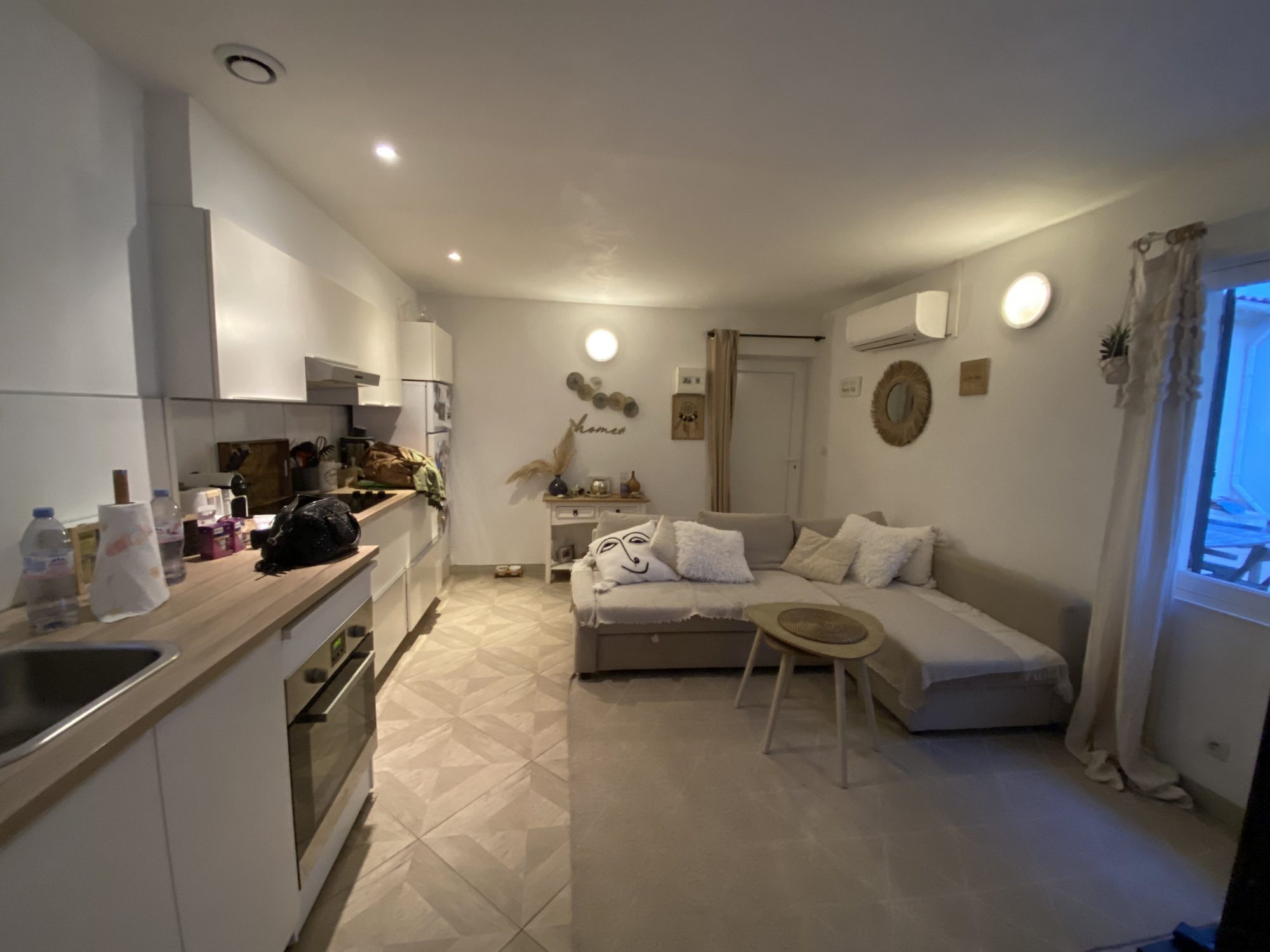 Appartement de deux pièces de 37m² situé au premier étage d'un immeuble sans ascenseur en plein centre ville de Cavalaire, composé de: séjour climatisé avec coin cuisine aménagé, chambre, salle d'eau avec WC, Terrasse ex...
