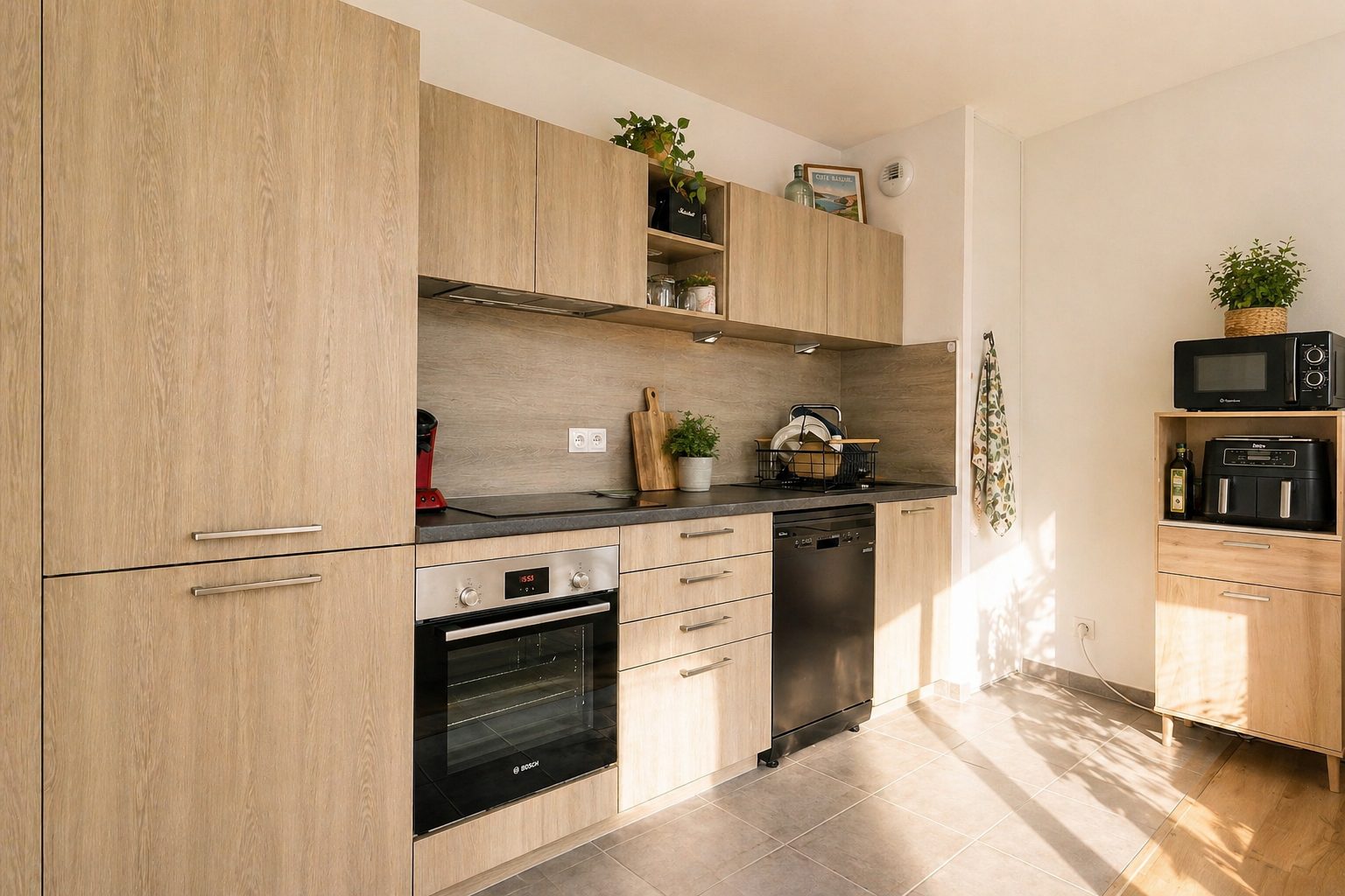 une cuisine aménagée donnant accès à une ...
