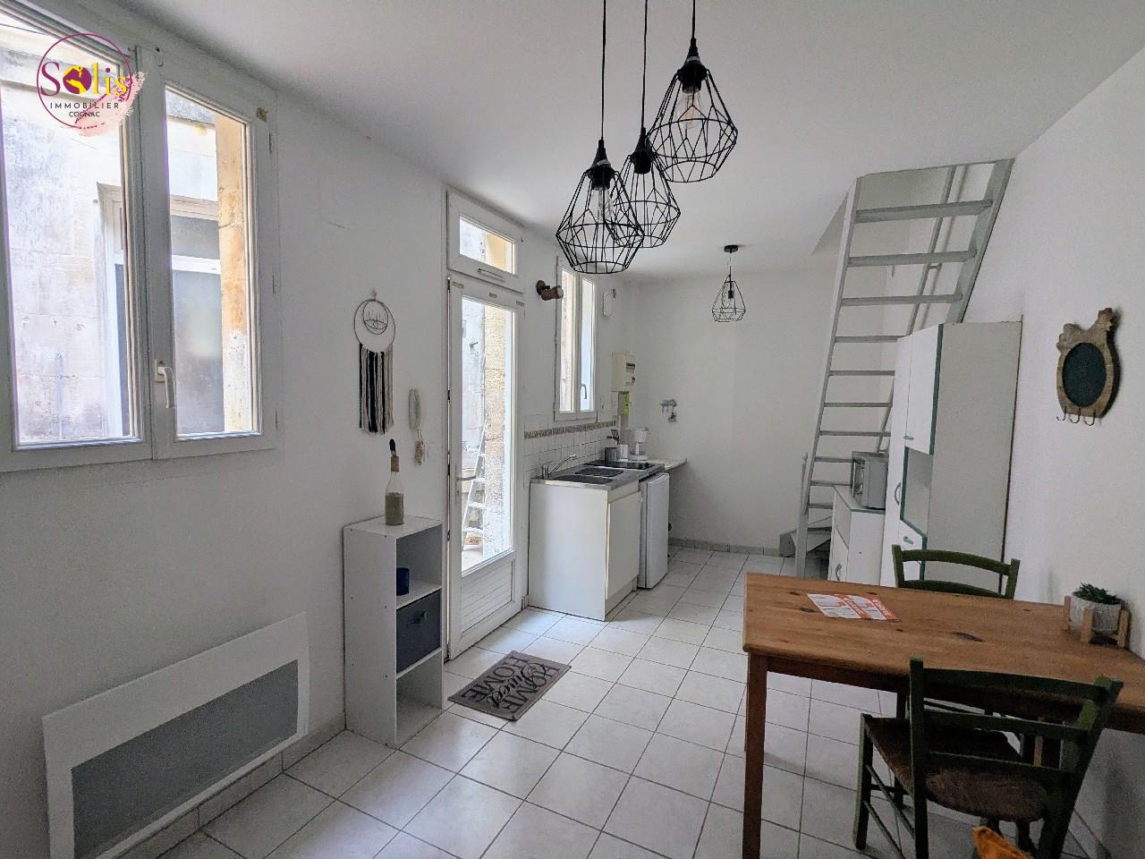 Appartement de type T1 Bis à louer dans le centre-ville de Jarnac, proche de toutes commodités, au niveau R-1, composé d'une pièce de vie avec coin cuisine et coin salon, une salle d'eau avec douche, va...