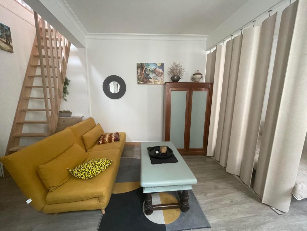 L'appartement comprend un séjour avec une cuisine ouverte aménagée , un coin nuit, une salle d'eau avec WC et une mezzanine...