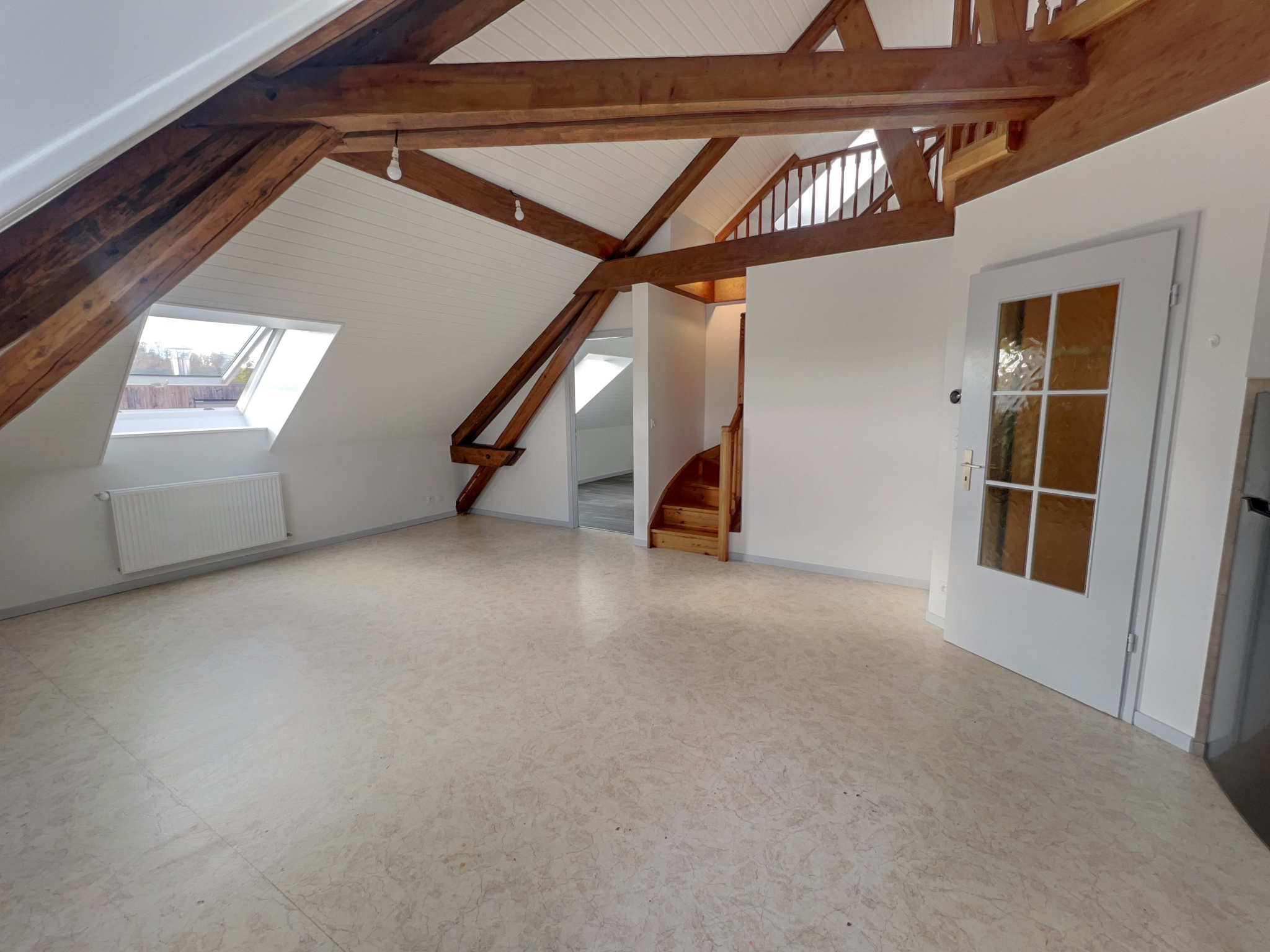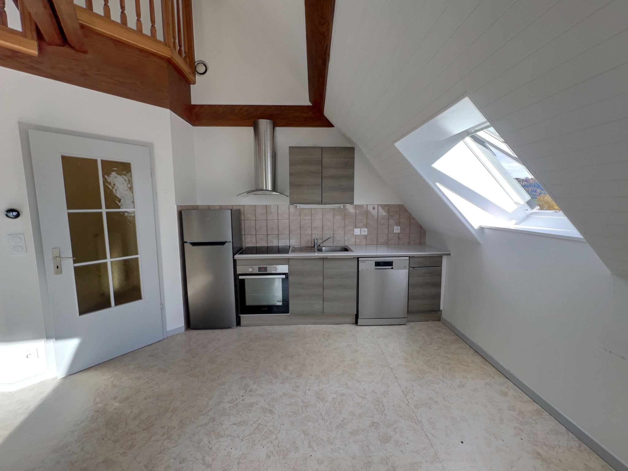 APPARTEMENT mansardé au 3ème étage comprenant entrée, cuisine aménagée, 2 chambres, salle d'eau avec WC et salon en mezzanine, cave