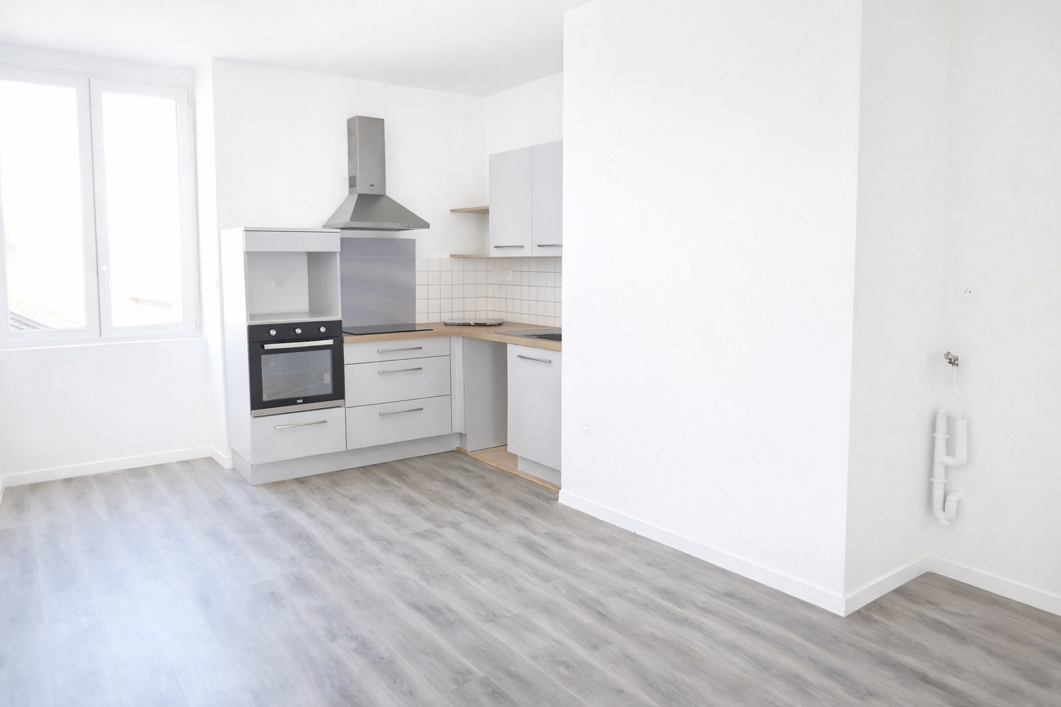 Appartement comprenant: une petite entrée, un séjour ouvert sur la cuisine équipée de plaques vitro et d'une hotte, une chambre, salle d'eau, wc séparés.