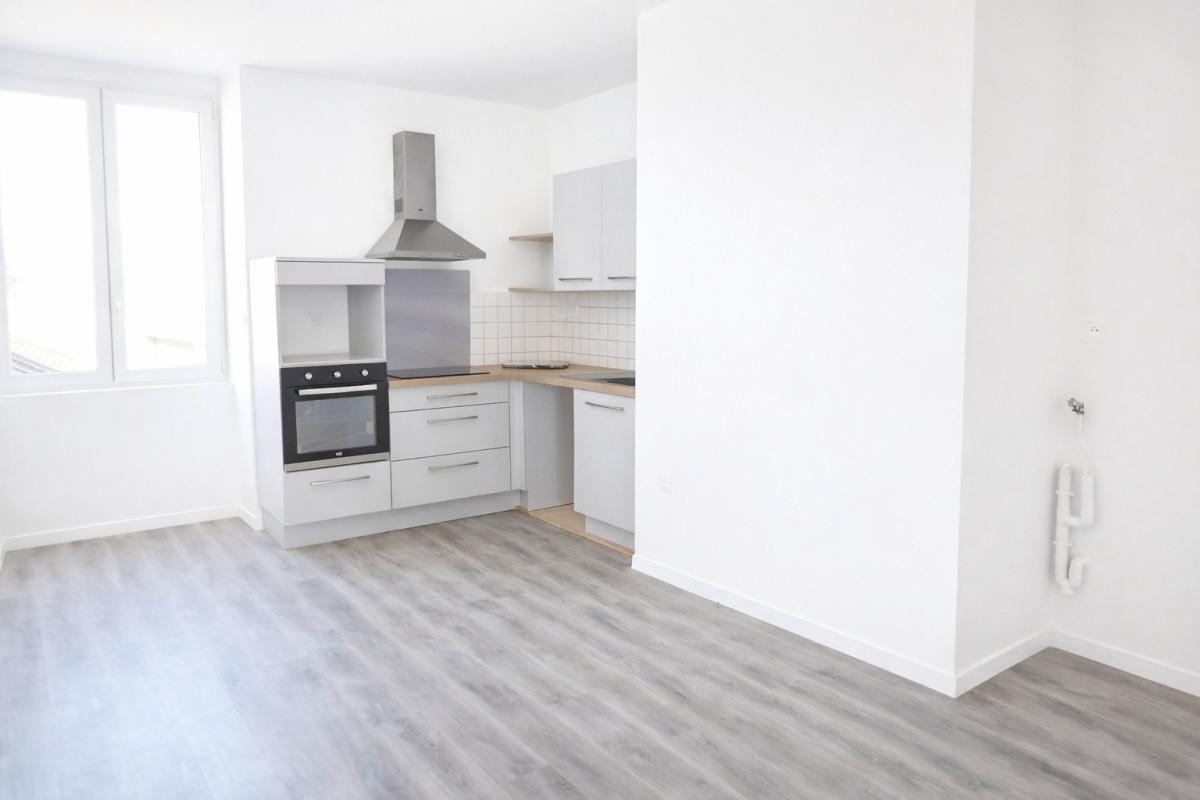 Appartement en centre-ville comprenant une cour privée avec cellier, une entrée donnant sur une cuisine aménagée et équipée (plaque et hotte), un séjour, avec acces terrasse privative, au demi-niveau, 1 chambre avec placard et une salle d'eau avec WC. A l...