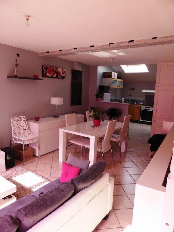 A louer hyper centre-ville de Châteauneuf sur Loire, duplex comprenant une entrée sur rue commerçante, un séjour lumineux, une cuisine ouverte aménagée, une salle de bains et un WC.