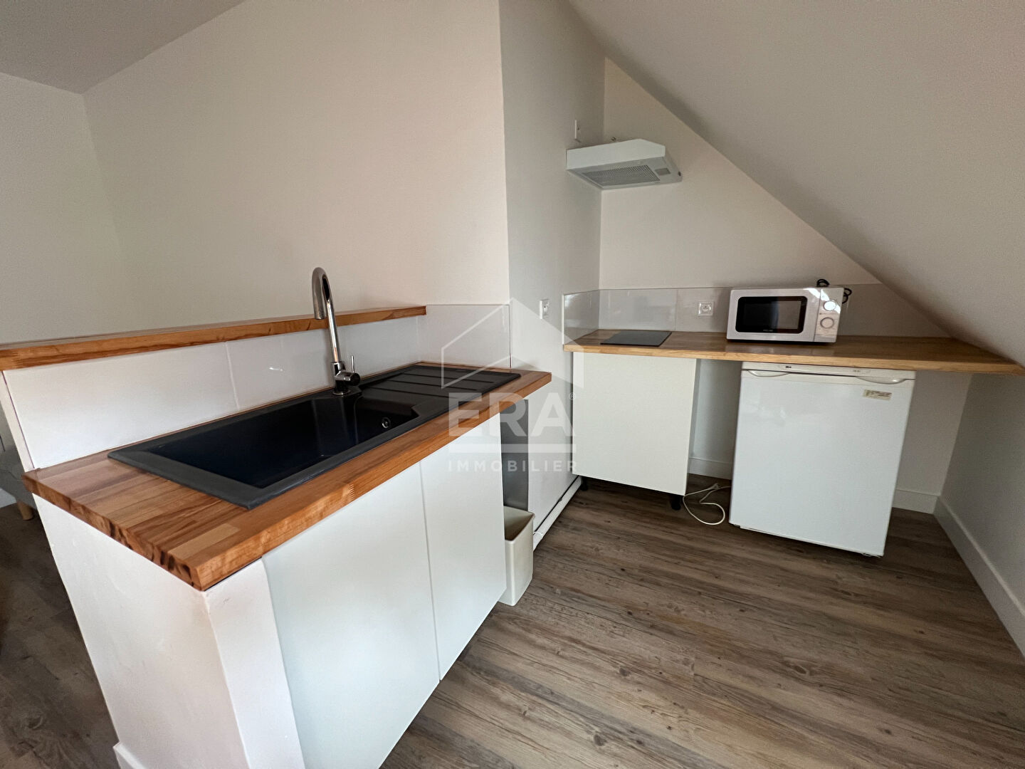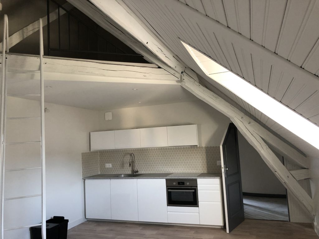 A louer studio équipé en RDC, quartier cité administrative de Châteauroux, comprenant : Entrée sur pièce de vie, cuisine, salle d'eau avec WC.