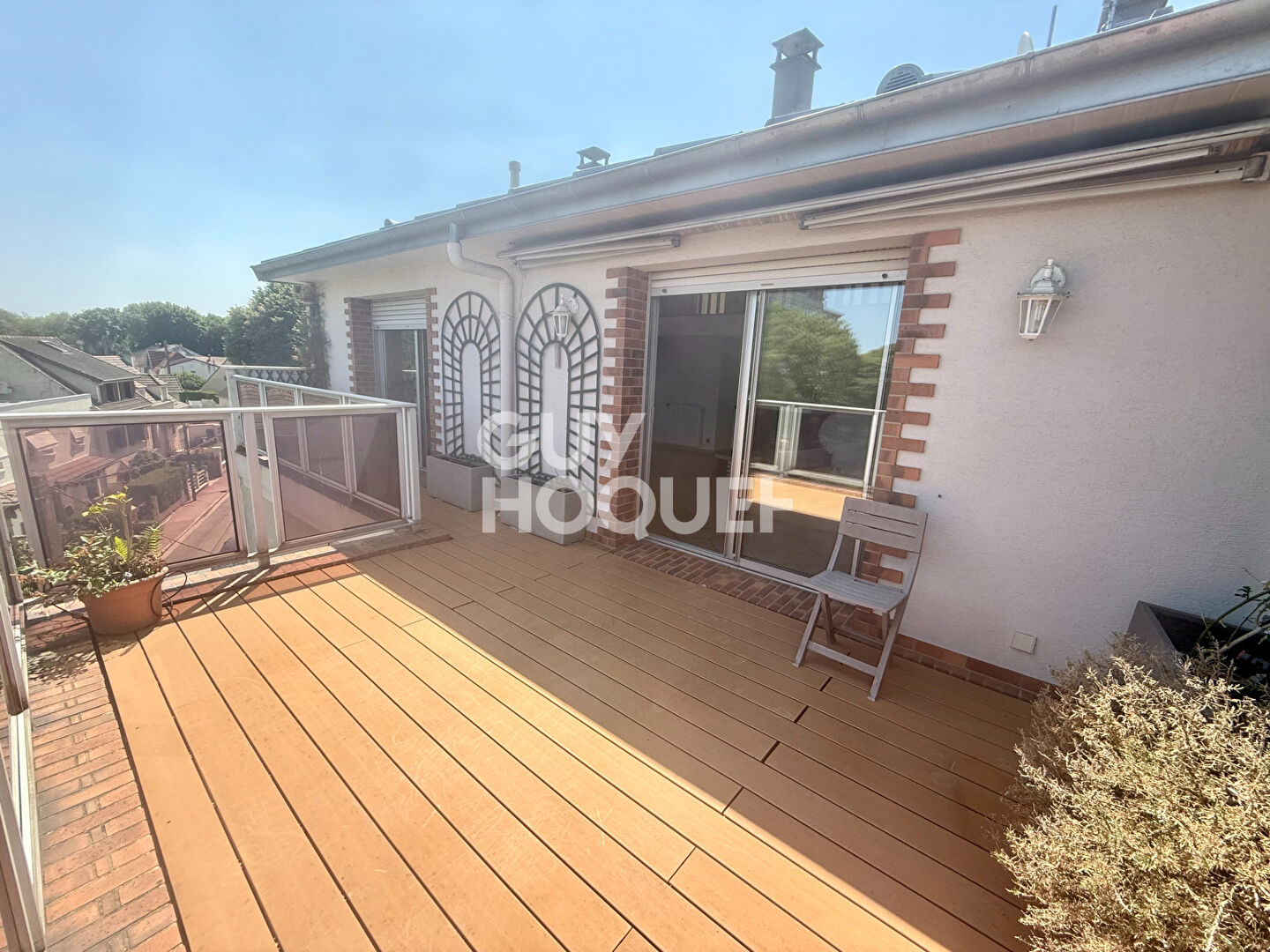 Beau duplex d'une surface de 105.44 m² au sol, en très bon état général traversant. Comprenant entrée avec placard, séjour / salle à manger avec cheminée décorative donnant sur terrasse de17 m², salle de bains, cuisine équipée donnant sur balcon, 2 chamb...